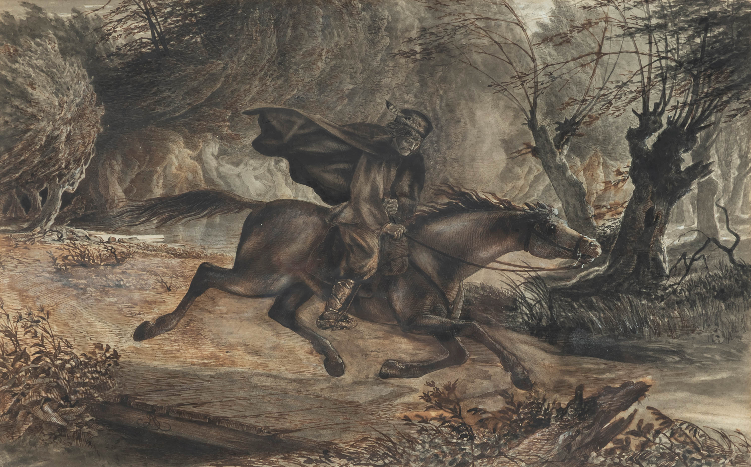 kredka, akwarela, papier, 27 x 42 cm w świetle passe-partout,