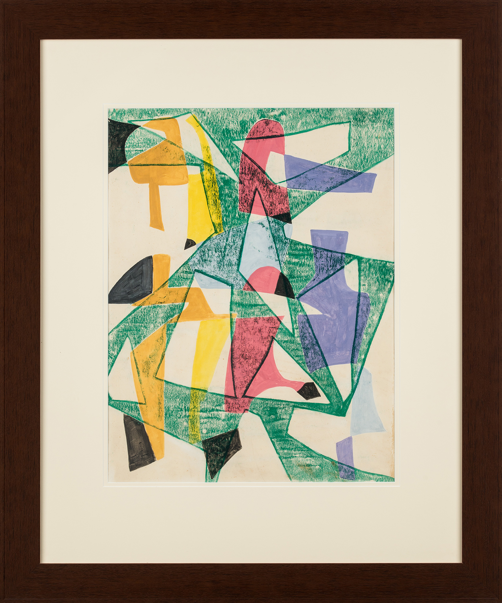 tempera, monotypia na papierze naklejonym na płótno, 1956 rok, 56 x 42,5 cm,