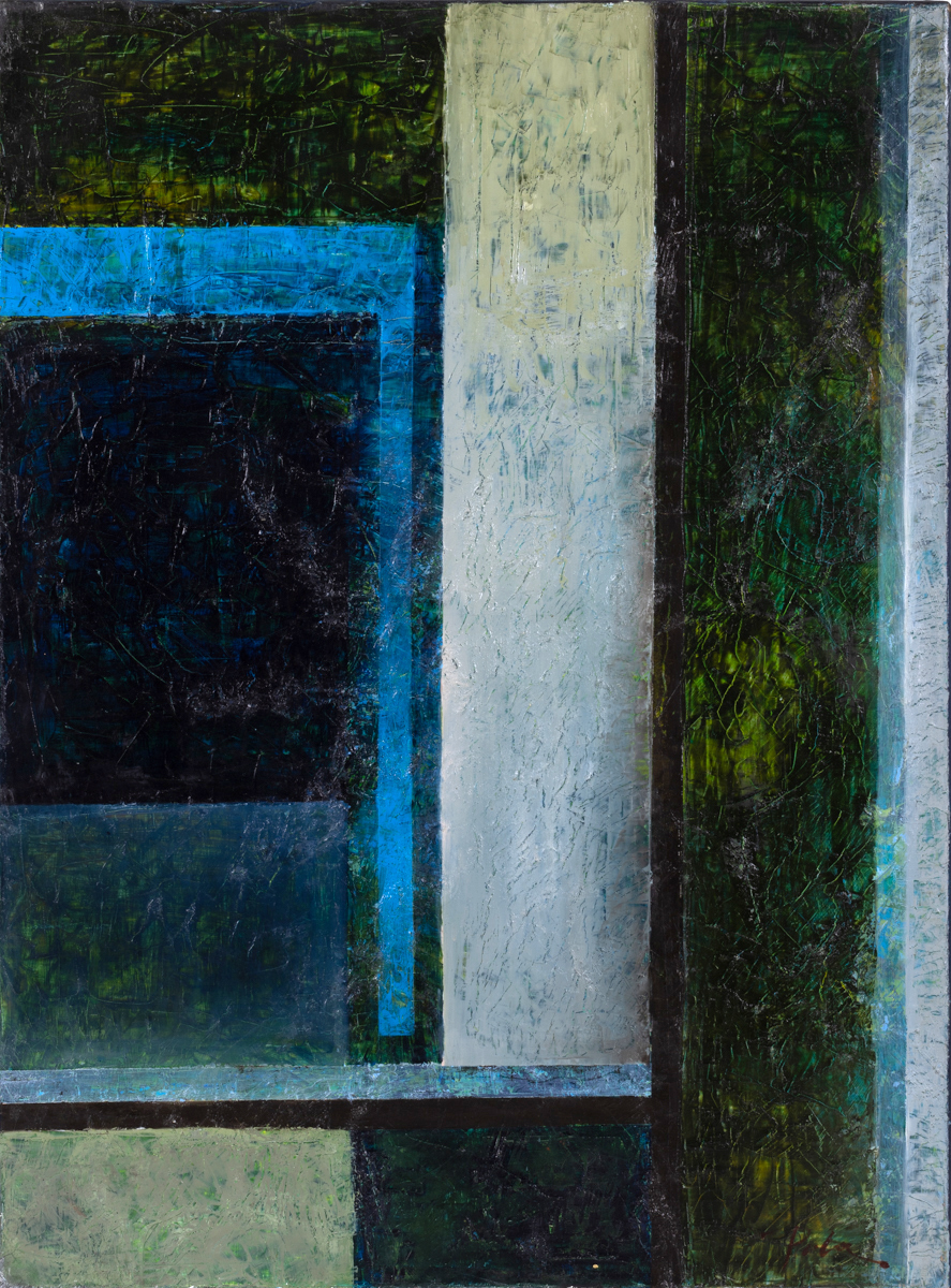 olej, płótno, 81x60 cm,sygn. p.d.: Pola, opisany na odwrocie: "UKŁADY" III TRYPTYK Paulina Leszczyńska – Pola 2005