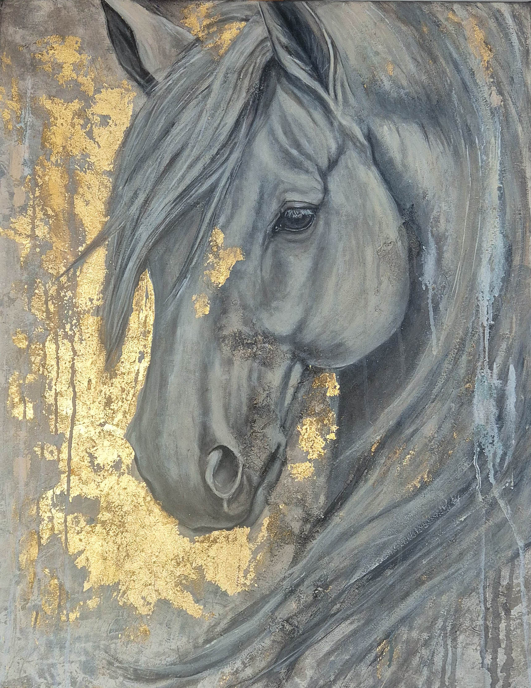 technika mieszana (akryl, szlagmetal, beton), płótno, 78 x 58 cm,