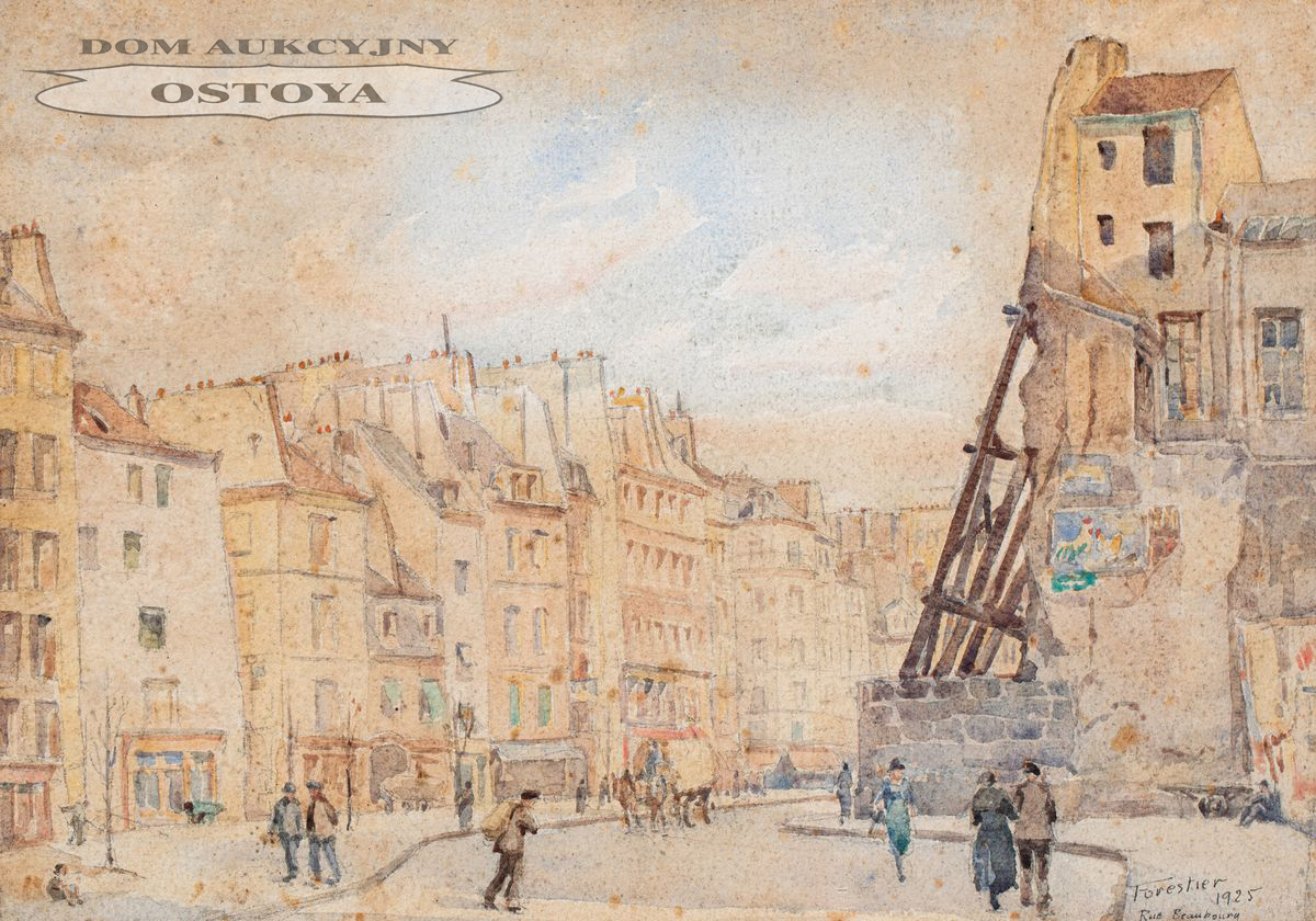 Ołówek, akwarela, papier; 23 x 32,5 cmSygnowany p.d.: Forestier / 1925 / Rue Beaubourg