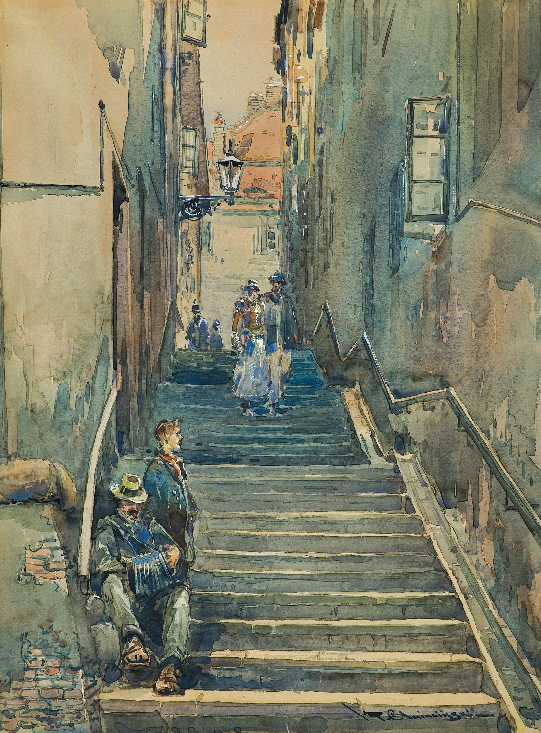 Władysław Chmieliński (Warszawa 1911 - Warszawa 1979) był malarzem związanym z Warszawą, gdzie stale mieszkał i pracował. W latach 1926-1931 studiował w warszawskiej Miejskiej Szkole Sztuk Zdobniczych i Malarstwa (dawna Klasa Rysunkowa). Wiodącym tematem jego obrazów były widoki miejskie, malowane olejno i akwarelą. W latach 1935-1938 stworzył cykl akwarel przedstawiających obiekty polskiej architektury; wśród nich, widoki Sandomierza, Krakowa, Kazimierza nad Wisłą, a także wnętrza zabytkowych kościołów czy pałaców, m.in. Zamku Królewskiego w Warszawie i Pałacu w Wilanowie. Malował także pejzaże i wiejskie sceny rodzajowe – kuligi, sanny, zaprzęgi, wesela, konie na tle krajobrazu. W latach 1967-1969 wyjeżdżał na dłuższe pobyty do Danii. W latach 1936-1939 artysta używał także pseudonimu „Władysław Stachowicz”.