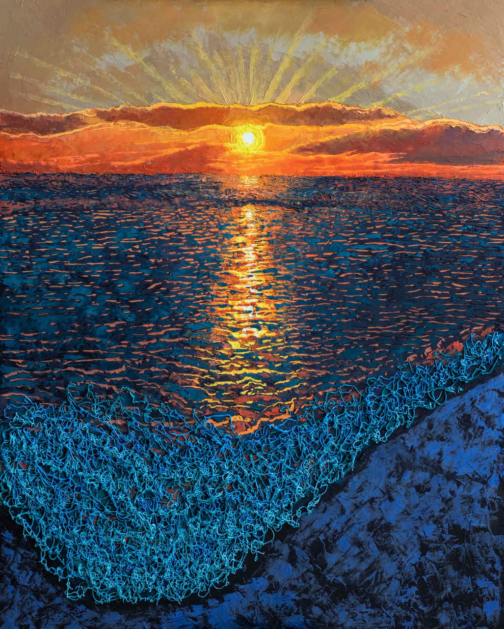 Olej, sklejka, srebro mineralne, zimny wosk, 50 x 40 cm,