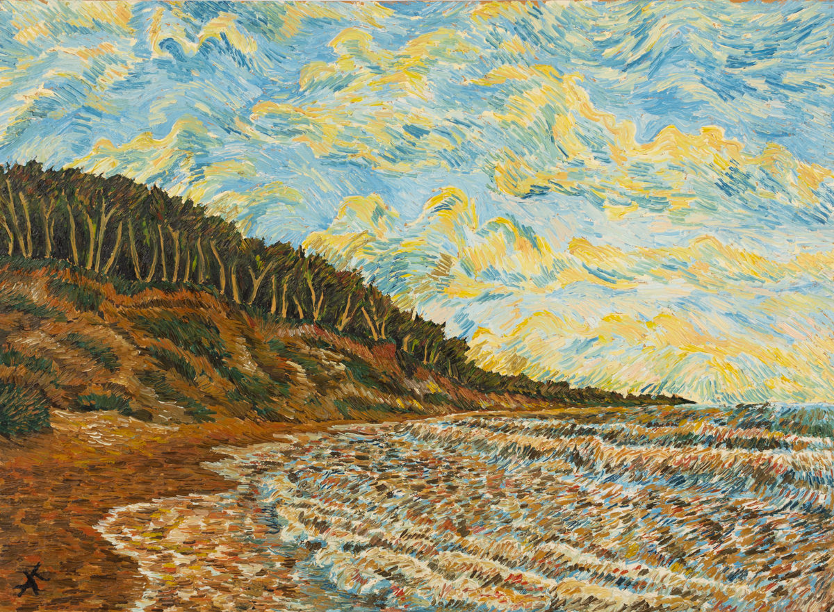 olej, płótno, 54x75 cm,sygn. l.d.: A, opisany na odwrocie: URWISKA NAD BAŁTYKIEM ARKADIUSZ KONIUSZ WRZESIEŃ 2005