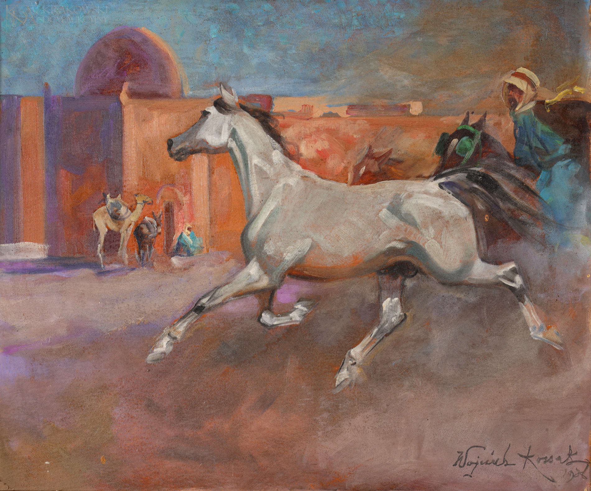olej, tektura50 x 59 cm; 68 x 82 cm (z oprawą)Sygn. i dat. p.d.: "Wojciech Kossak | 1936"Na odwrocie pieczęć lakowa z herbem rodu Kossaków.
