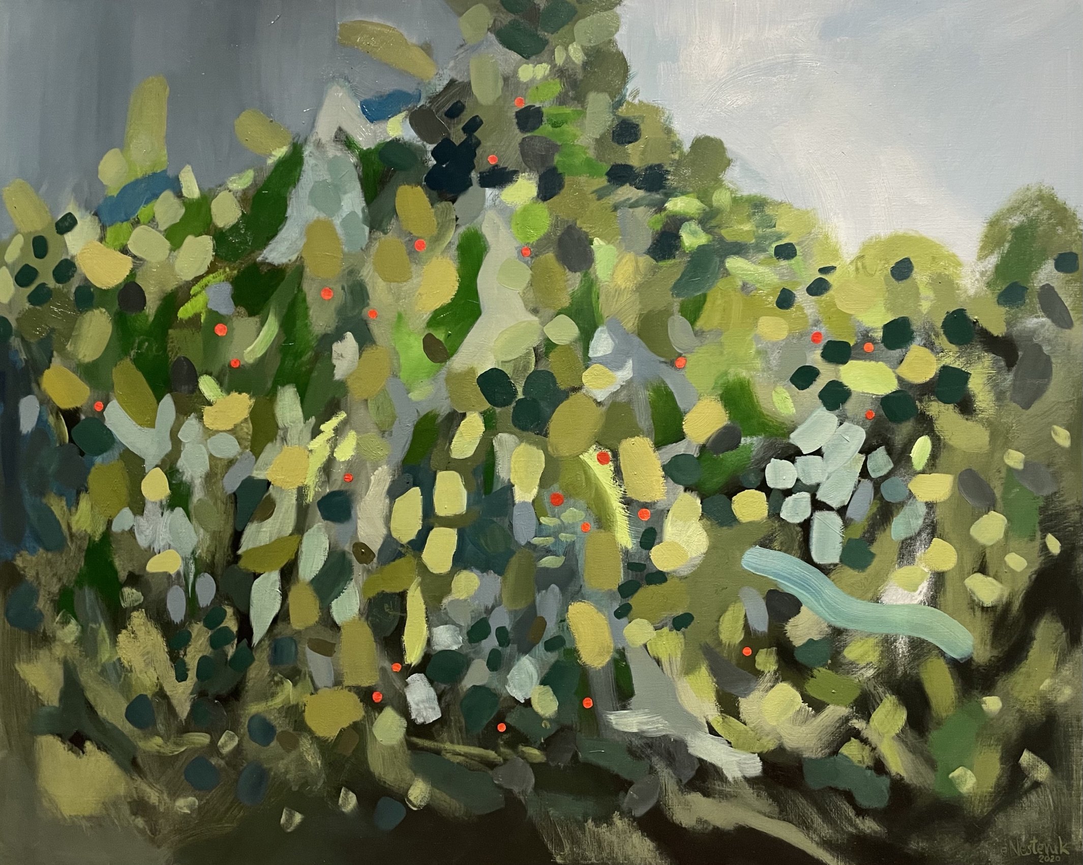 olej/płótno80 x 100 cmsygnowany, opisany i datowany na odwrocie: "Emilia/ Nesteruk/ 2020/ 100x80/ W ŁASKAWYM SŁOŃCU PAŹDZIERNIKA"