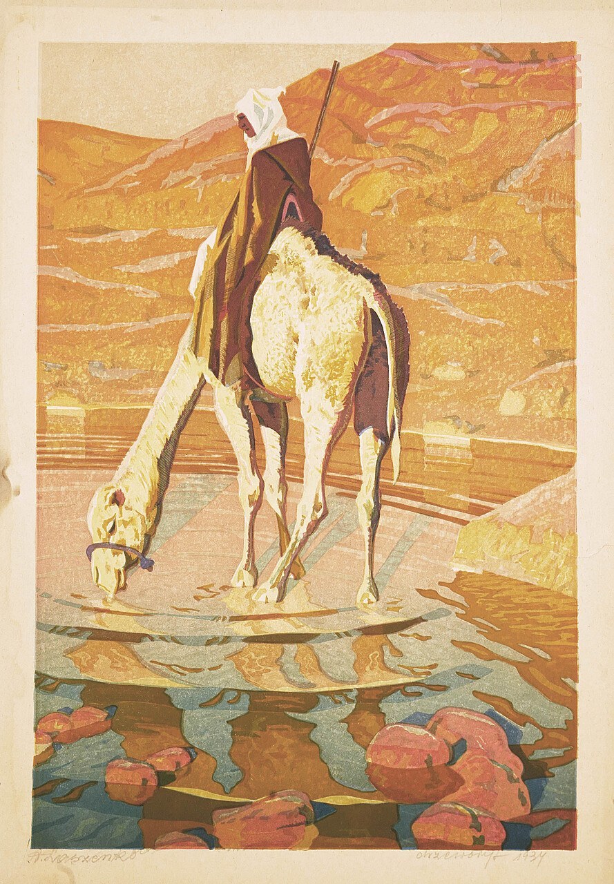 drzeworyt barwny, papier 42 x 28 cm w świetle passe -partout o wym. 58 x 43 cm; sygnowany ołówkiem „A.Laszenko” l.d. oraz opisany i datowany ołówkiem „drzeworyt 1934” p.d.