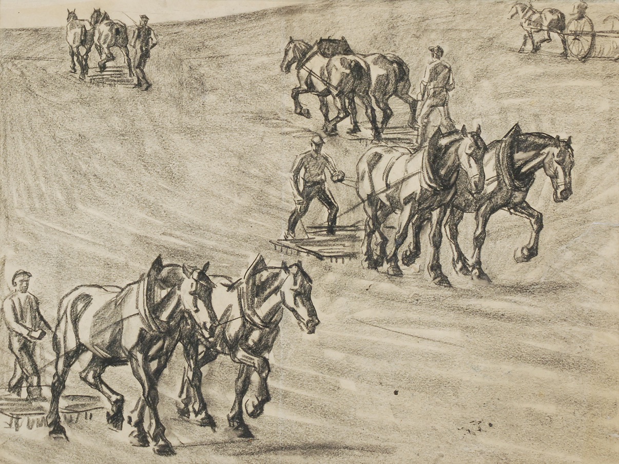 węgiel, papier; 55,5 x 69 cm;
