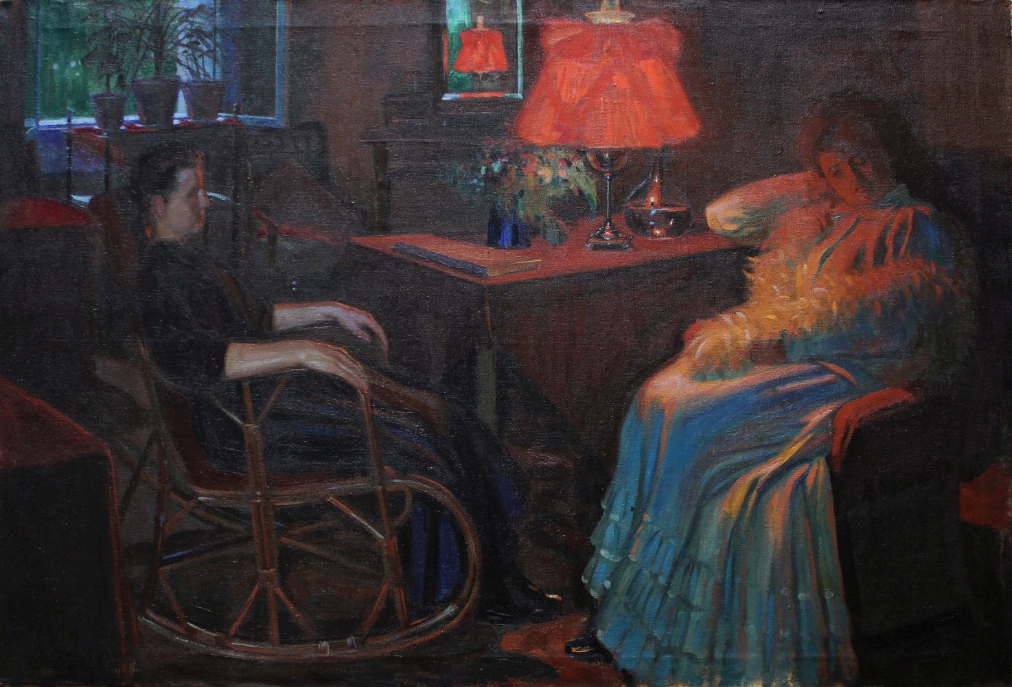 Obraz prezentowany na wystawie „Ukryte znaczenia. Motyw wnętrz w sztuce polskiej od XIX do XXI wieku", Muzeum Narodowe w Poznaniu 11.09.2025-18.01.2026; reprodukowany w katalogu wystawy, poz. 49, s. 173. Ekspertyza Maryli Sitkowskiej, autorki monografii artysty.