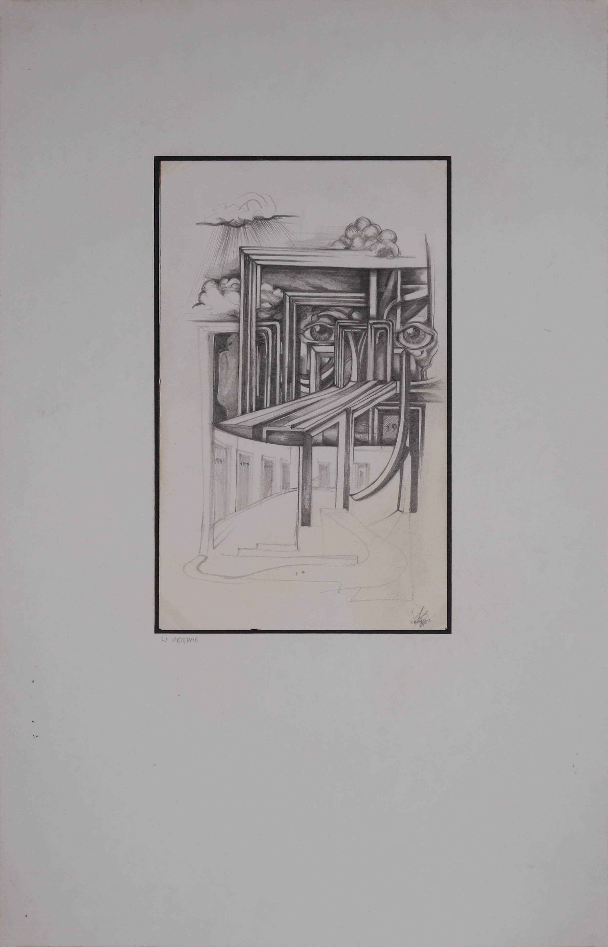 ołówek, papier, 24 x 14,6 cm; (w świetle oprawy);opisany i sygn. u dołu: W URZĘDZIE, (sygnatura nieczytelna) KRAKÓW 85