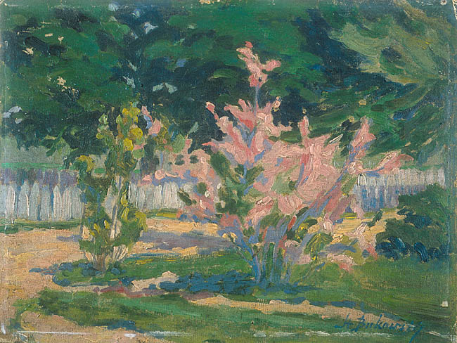 olej na płótnie naklejonym na tekturę, 27 x 35,5 cm, sygnowany p. d. "St. Bukowski", na odwrocie naklejka wystawowa Zachęty z 1914 r.