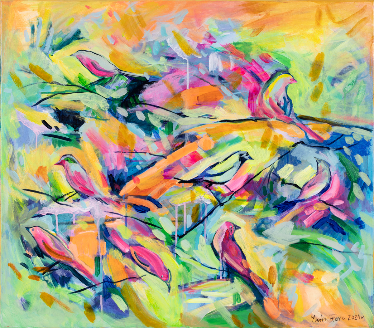 akryl, płótno, 70x80 cm,sygn. p.d.: Marta Forc 2021 r., opisany na odwrocie: "Wakacyjna nadzieja" Akryl, 70cm x 80cmm Marta Forc 2021 r.