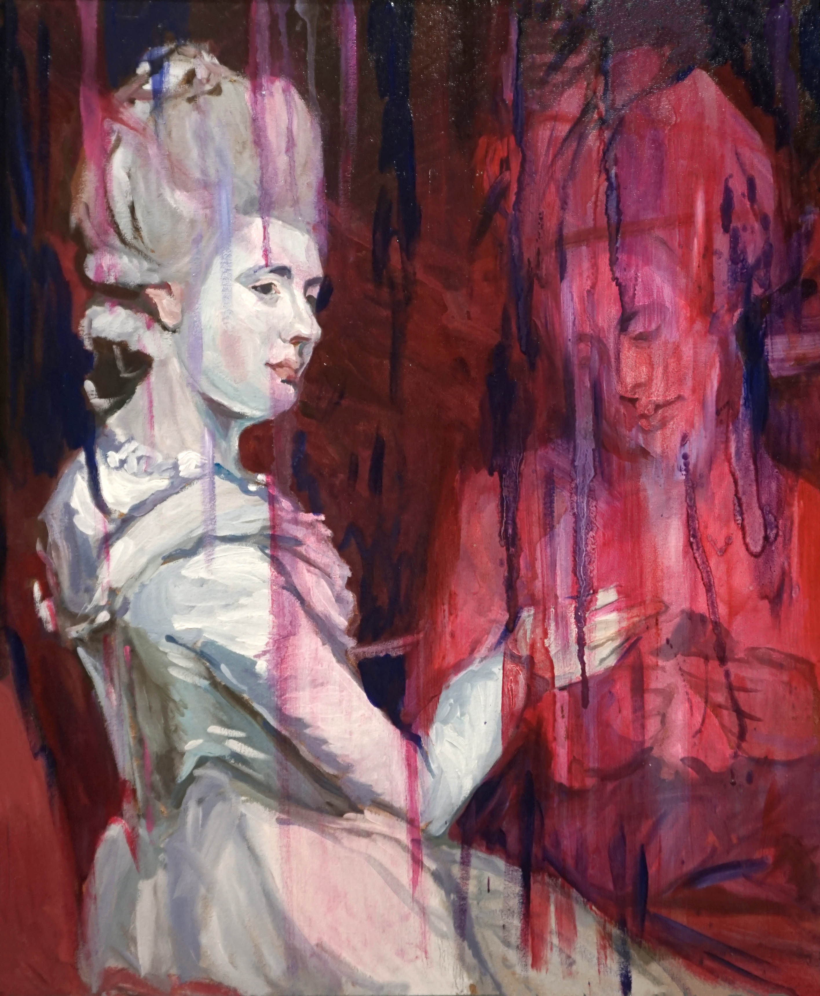 sygn. l.d.: piktogramem oraz na odwrocie. Praca inspirowana obrazem sir Joshua Reynolds'a "The Ladies Waldegrave", 1780.