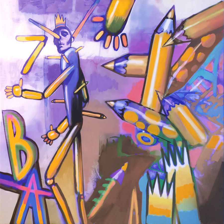 olej i techniki cyfrowe na płótnie, 90 x 90 cmsygnowany p.d. róg: 'P.Gola'sygnowany i opisany na odwrociu: 'P.Gola 2022 Walk alone'