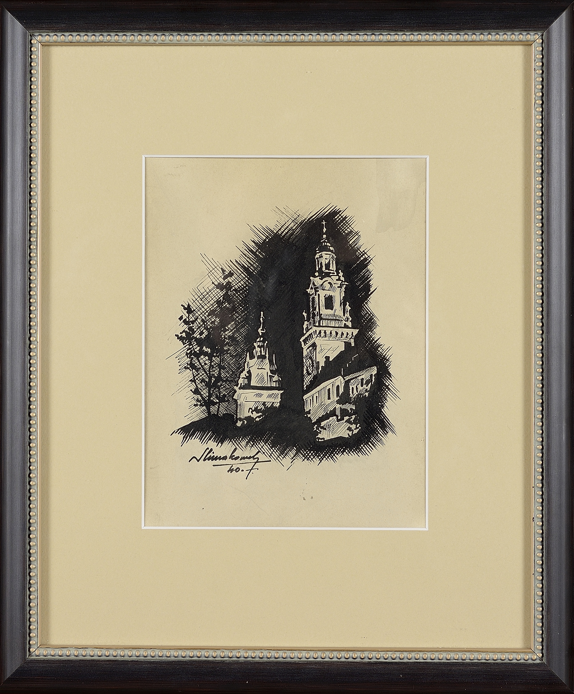 Tusz, papier, 18 x 14 cm w świetle p-p.,