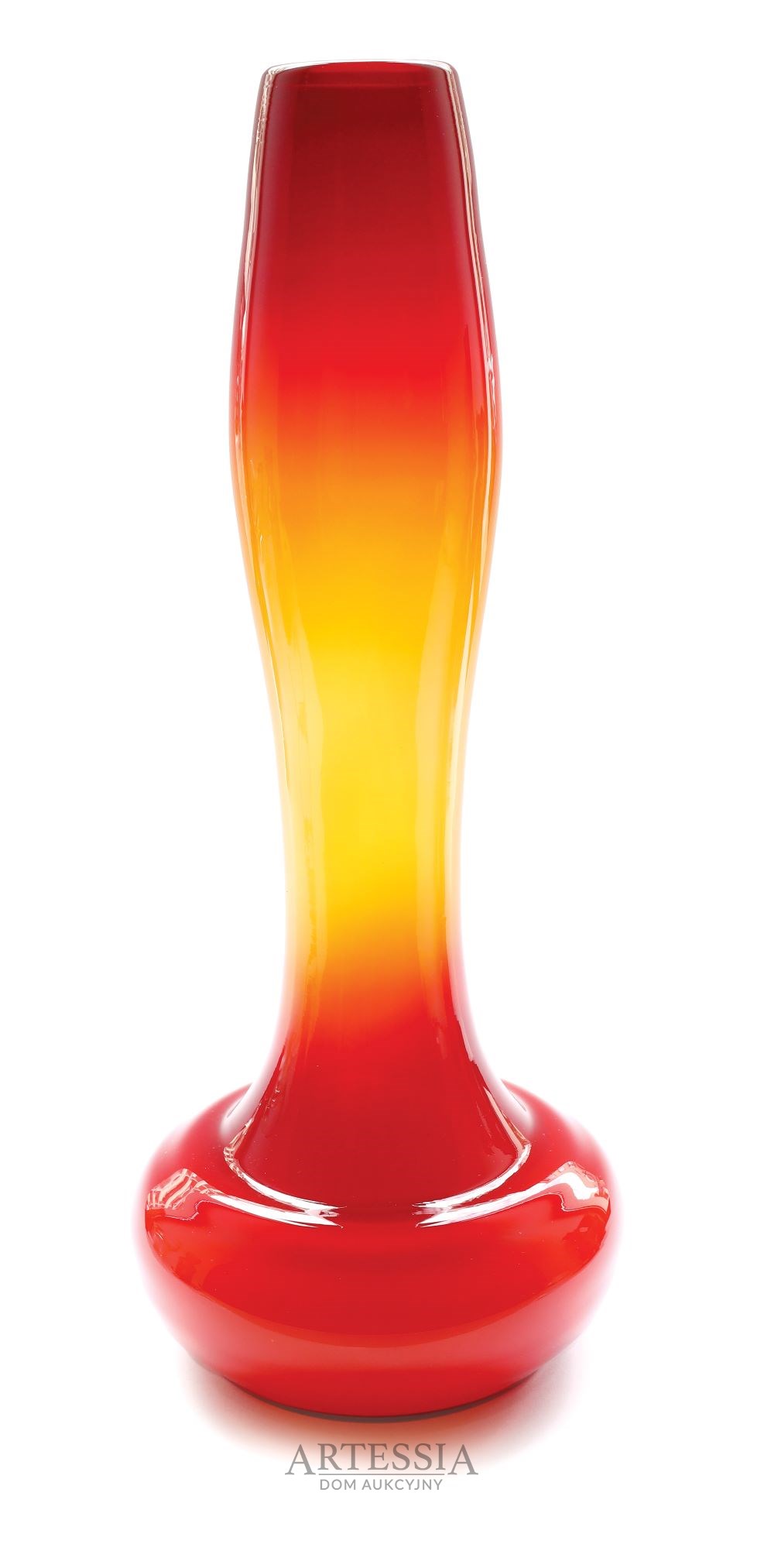 Huta Szkła „Sudety” w Szczytnej, lata 70. XX w. szkło sodowe, ręcznie formowane cieniowane, barwione w masie, wys. 42 cm