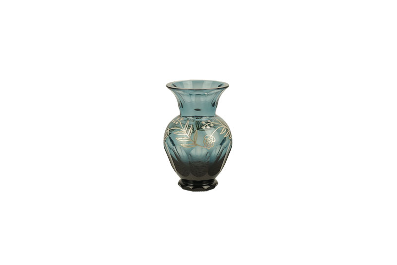 szkło szlifowane, niebieskie, apliki srebrne, wys. 12,5 cm