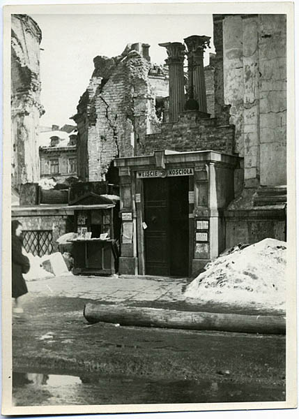 ok. 194517,4 x 12,4 cmWejście do podziemnej części kościoła pw. św. Aleksandra od strony zachodniej.na odwrocie pieczątka: `fot. Stefan Rassalski`odbitka z epoki