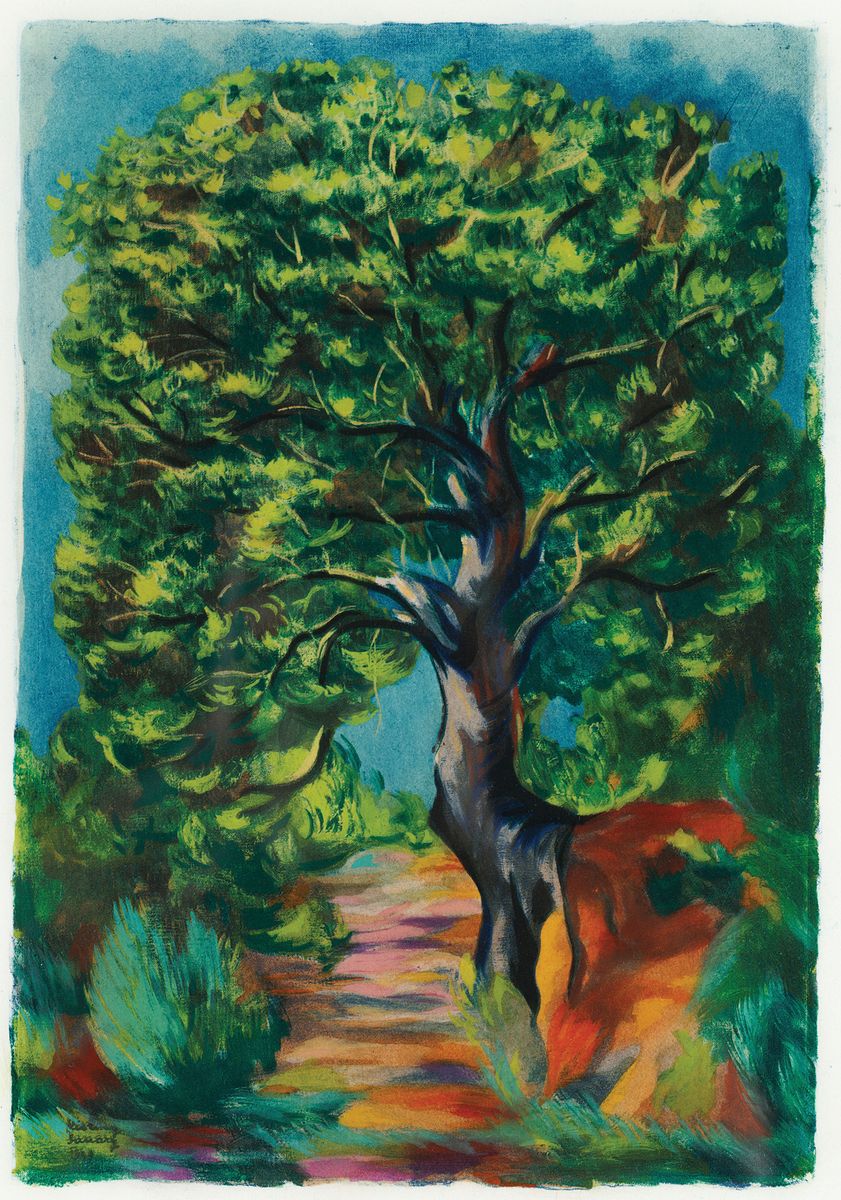 Litografia barwna, papier; 28,5 x 19,5 cm (kompozycja)Sygnowana z kamienia l.d.: Kisling / Sanary / 1949Z teki „L` épopée Bohémienne” (Epopeja cygańska), 1959Oprawiona