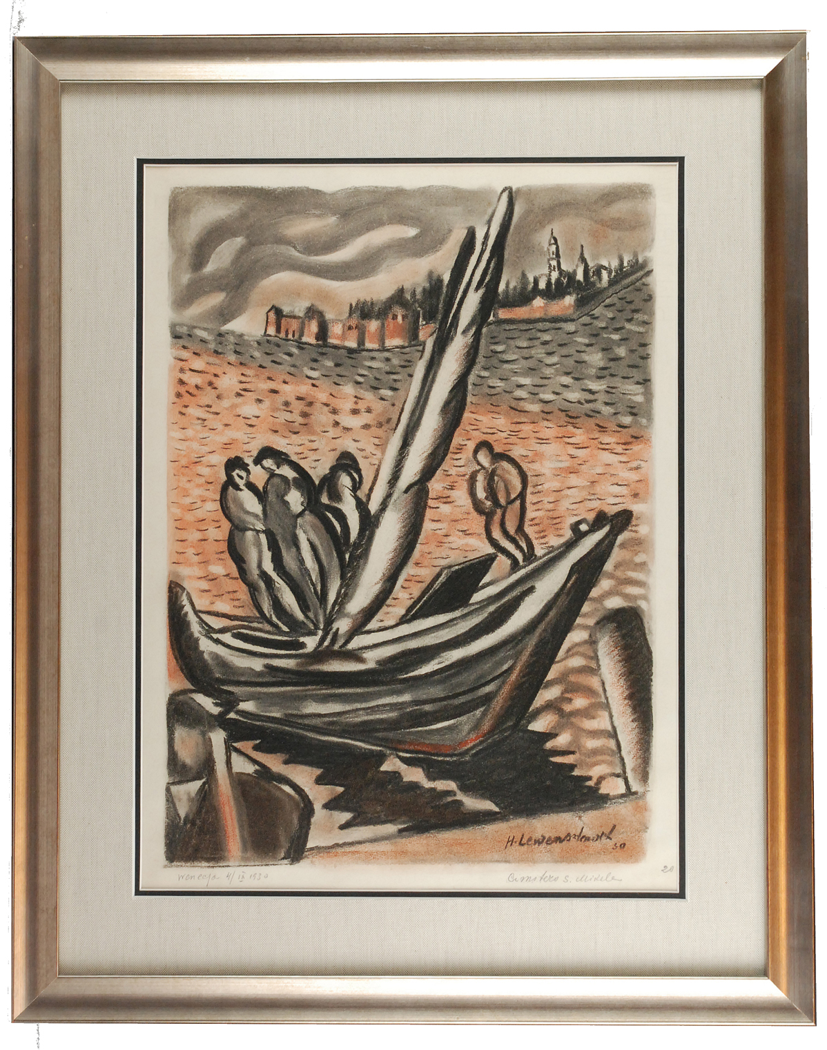 pastel, tusz lawowany, papier; 45,5 x 33 cm (w świetle oprawy); sygn. p. d.: H. Lewensztadt 30; poniżej l. d. ołówkiem: Wenecja 4/IX/1930; p. d. ołówkiem: "Cimitero S. Mikele" oraz numer: 20