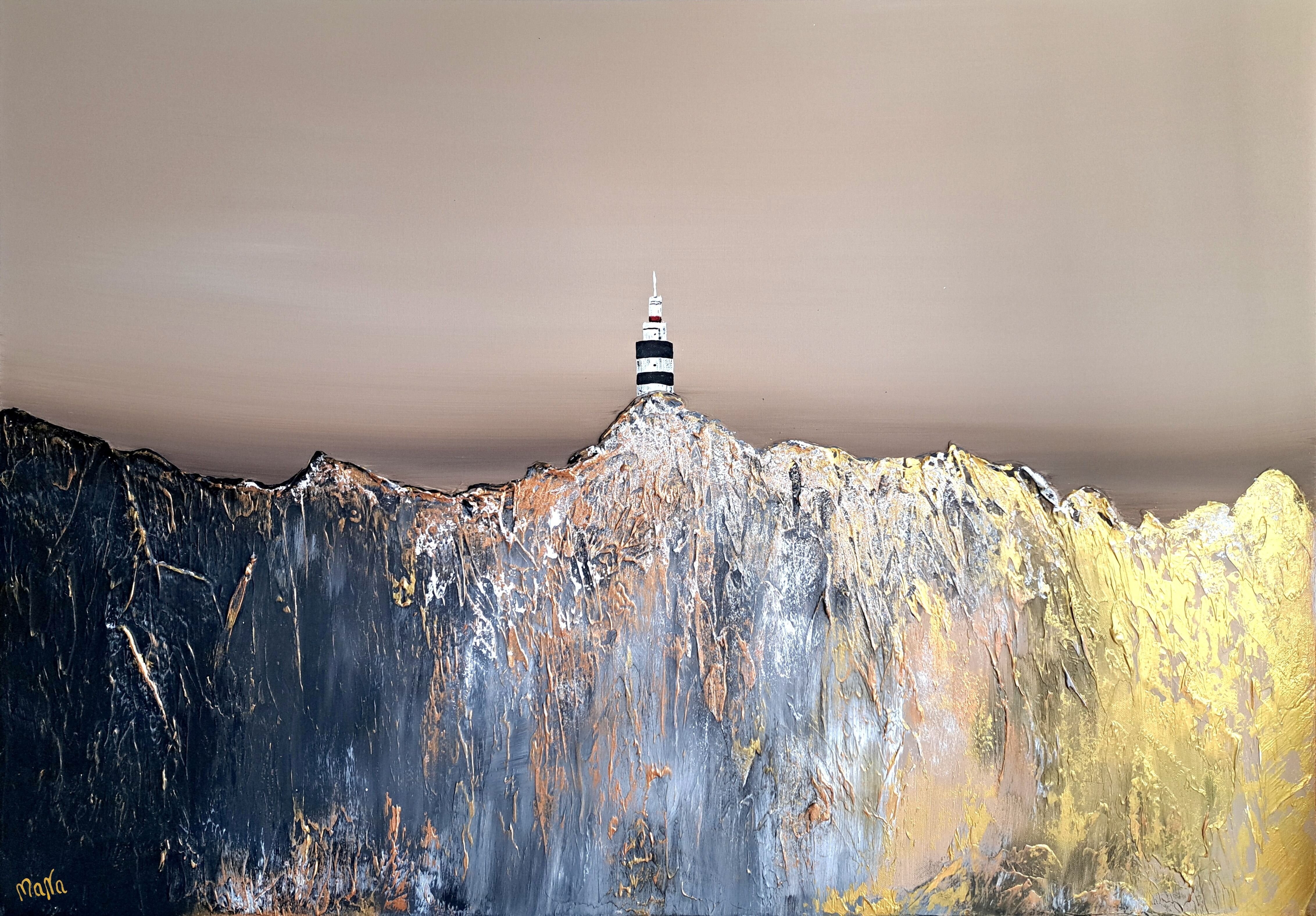 akryl, płótno, struktura brązy, złoto, 100 x 70 cm