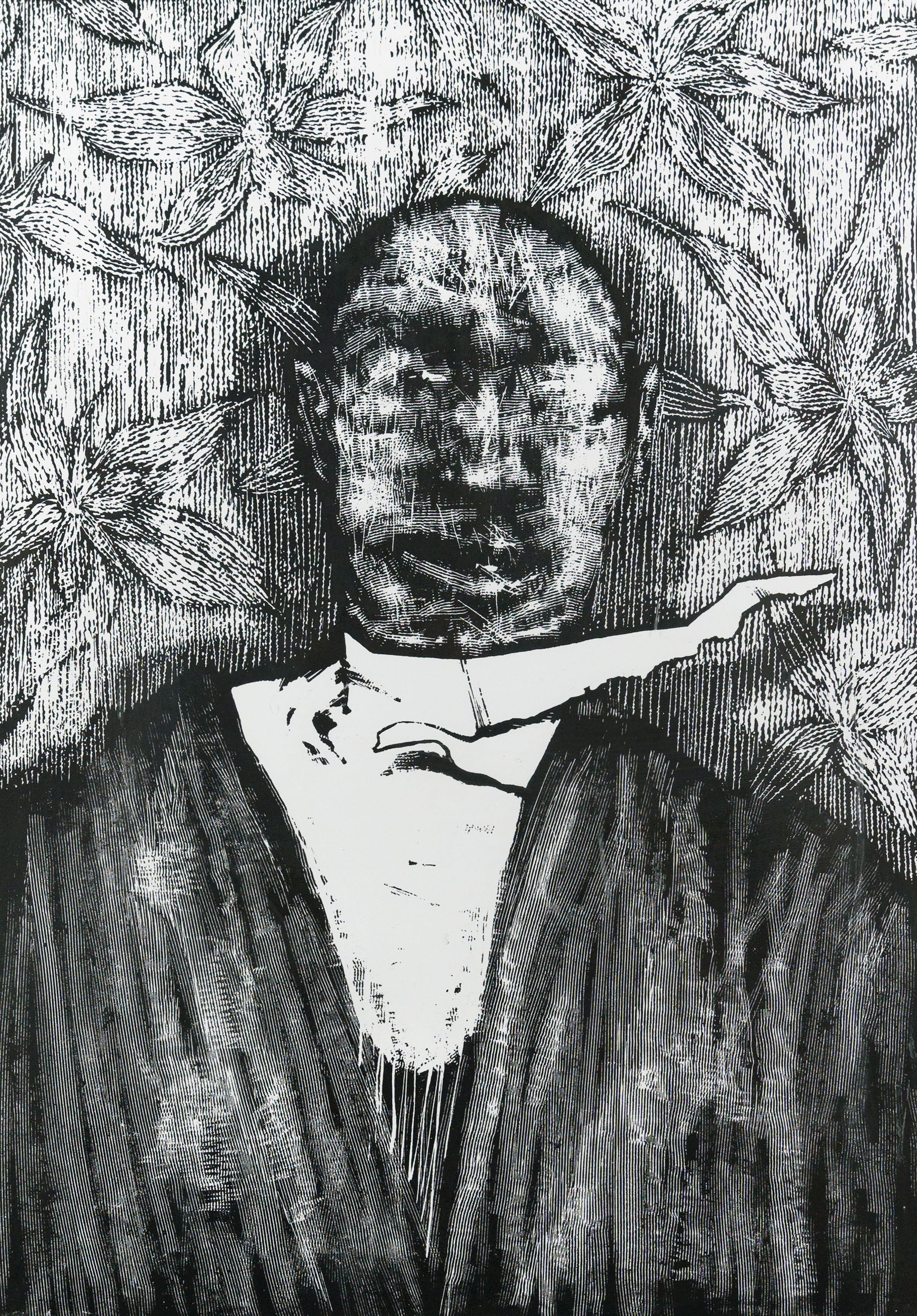 linoryt, papier70 x 49 cmwym. z oprawą 102,5 x 72,5 cmsygn. ołówkiem: l.d. "WHITE COLLARS I" śr.d. LINORYT 3/20; p.d.: Andrzej Załecki 2000