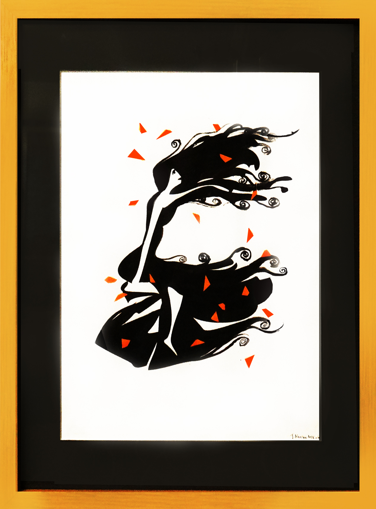technika mieszana (tusz, kolaż), papier, 29 x 20 cm, w oprawie: 40 x 30 cm,