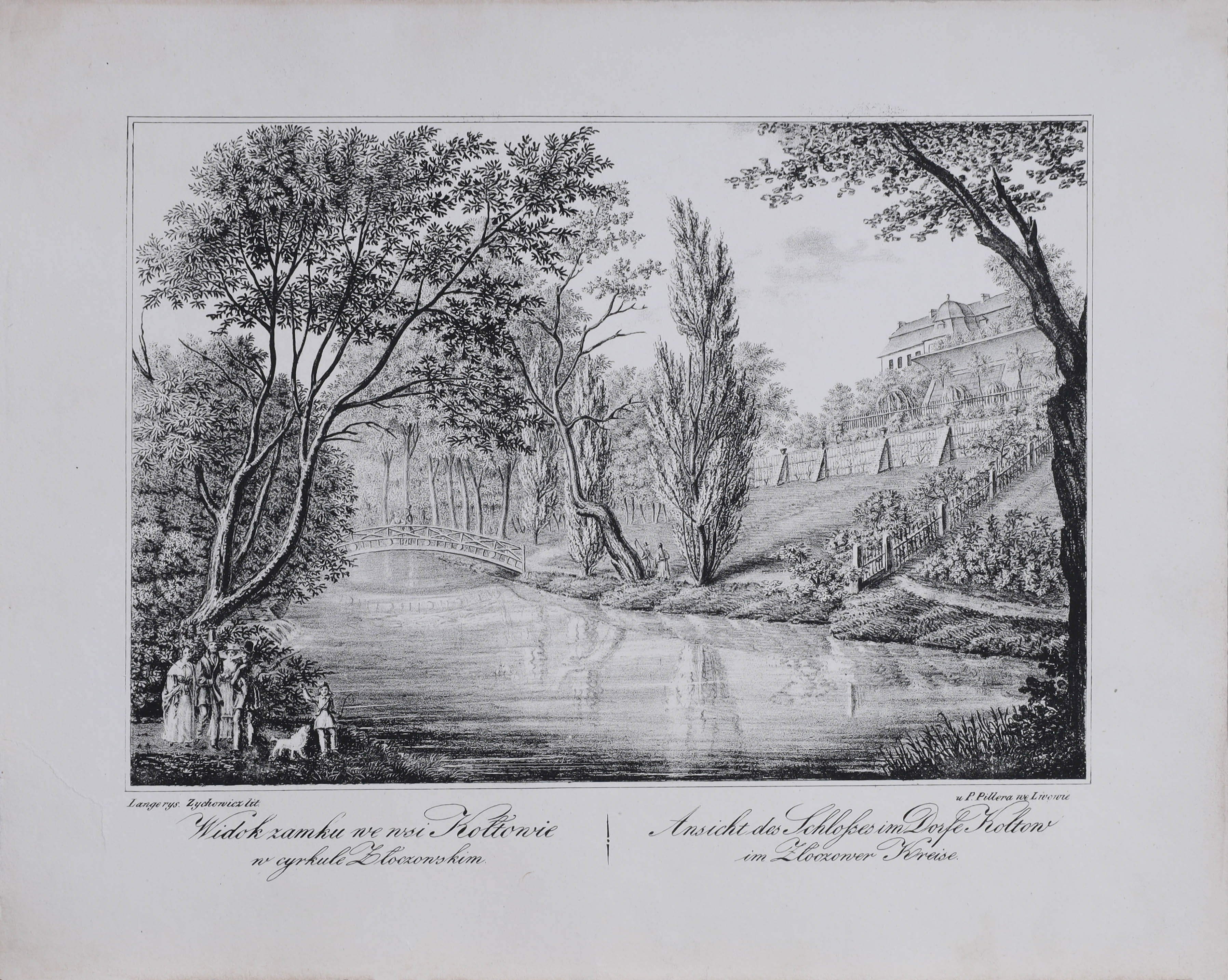 litografia, papier, 24,5 x 30,5 cm;opisany u dołu: Widok zamku we wsi Kołtowie w cyrkule Złoczowskim / Ansicht des Schlofses im Dorfe Kolton im Złoczower Kreise / u P.Pillera we Lwowie