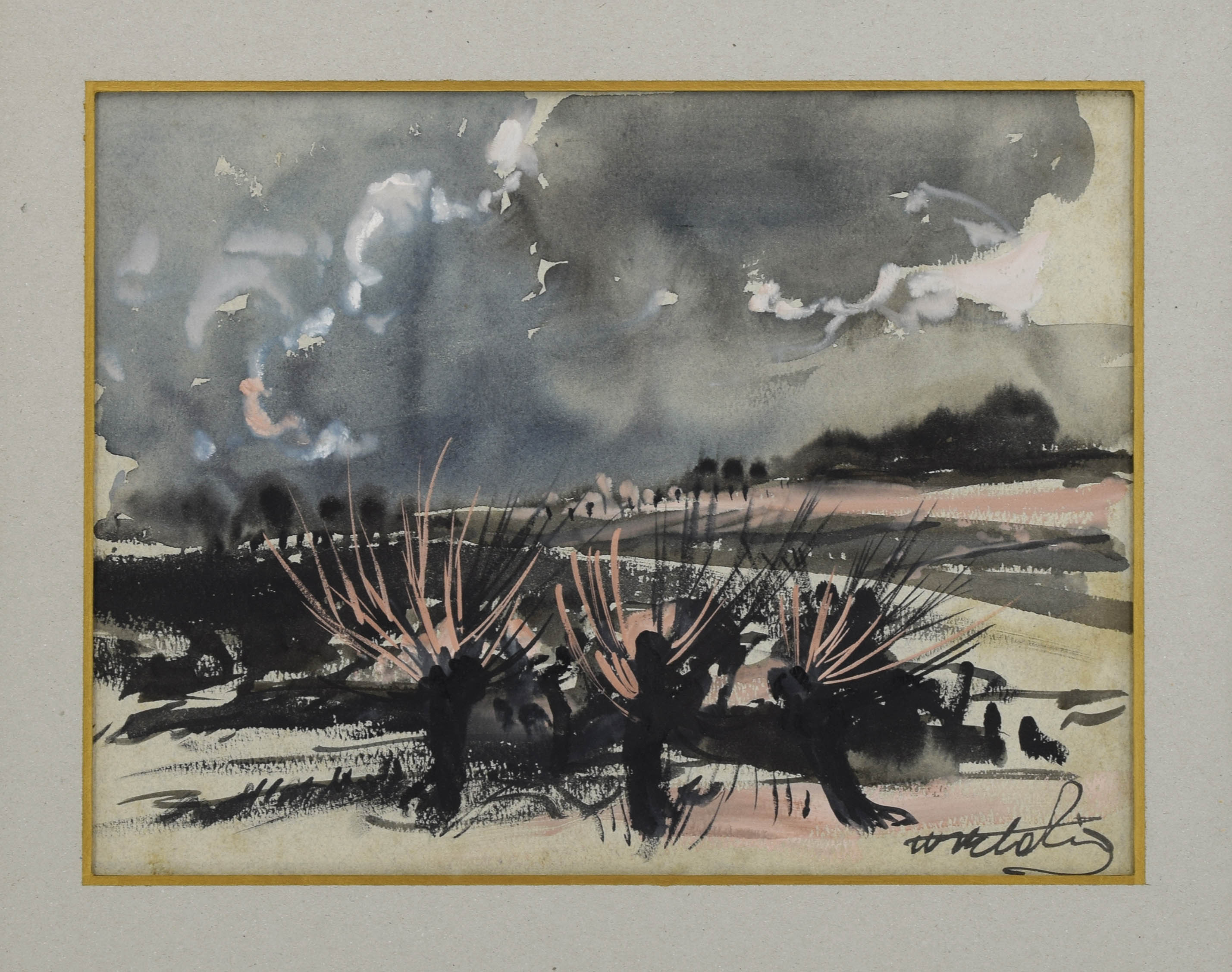 tusz, akwarela, gwasz, papier; 23,5 x 31,5 cm (w świetle oprawy);
