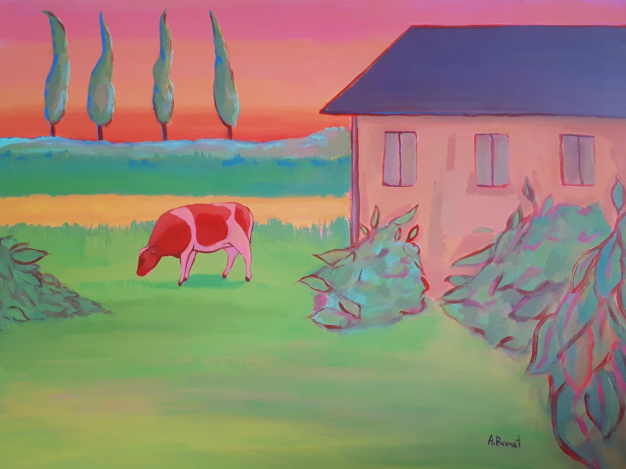 sygn. p.d.: A.Burnat, opisany na odwrocie: "Wieś latem" Agata Burnat 2021 r.