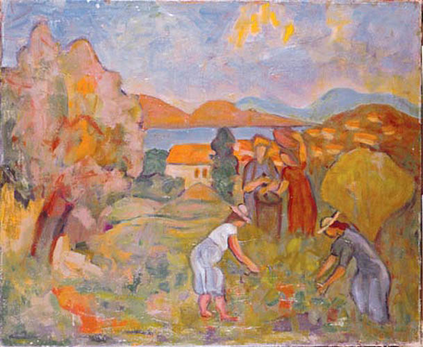 Syn rabina, uczęszczał do łódzkiej szkoły rysunkowej Jakuba Kacenbogena w Łodzi. Naukę kontynuował w warszawskiej ASP pod kierunkiem S. Lentza. W 1919 zamieszkał w Paryżu, gdzie wszedł w krąg twórców École de Paris; bliskie kontakty łączyły go z M. Kislingiem i A. Modiglianim. Podjął dalsze studia malarskie w Académie de la Grande Chaumiére i Académie Colarossi. W 1921 eksponował swe prace na wystawie malarzy żydowskich w Warszawie i Łodzi. Brał udział w prezentacjach polskiej sztuki w Paryżu: w Societé Nationale des Beaux-Arts (1921) i Galerie du Musée Crillon (1922). W czasie II wojny światowej przebywał w Saint-Tropez; tu związał się z wybitnym angielskim krytykiem i teoretykiem sztuki Rogerem Fry, który promował jego sztukę w Anglii i Stanach Zjednoczonych. Po zakończeniu wojny mieszkał także w Nicei i Paryżu. Artysta prezentował swe prace m.in. w paryskim Salon des Beaux Arts (1921), Salon des Indépendants (1922-1930), Salon d`Automne (1936-46), Galerie Zak (1934), londyńskiej Bloomsburry Gallery (1935), jerozolimskim Bezalel Museum, w Tel Avivie i Jaffie (1958-1961). Retrospektywne pokazy jego twórczości odbyły się m.in. w paryskiej Galerie Zak (1962), jerozolimskiej Bineth Gallery (1963), londyńskiej Ben Uri Gallery (1964), genewskiej Galerie Motte (1966), paryskiej Bernheim Galerie (1970) i amsterdamskiej Israel Gallery (1973). Tematyka obrazów Landau obejmowała portrety, sceny figuralne i martwe natury. Na jego wczesną twórczość oddziałała najsilniej sztuka Cézanne`a. W przestylizowanych wizerunkach przejawiły się też wpływy Modiglianiego i Kislinga. W prezentowanym obrazie pejzaż nasyca się kolorystyką południowych rejonów Francji; czerwienie, żółcienie i rudawe brązy przenikają się z zielenią tworząc barwną harmonię jesieni. Całość oddycha gorącym słońcem południa. Sylwetowe potraktowanie postaci zbieraczy wtopionych w krajobraz podnosi dekoracyjny charakter kompozycji.