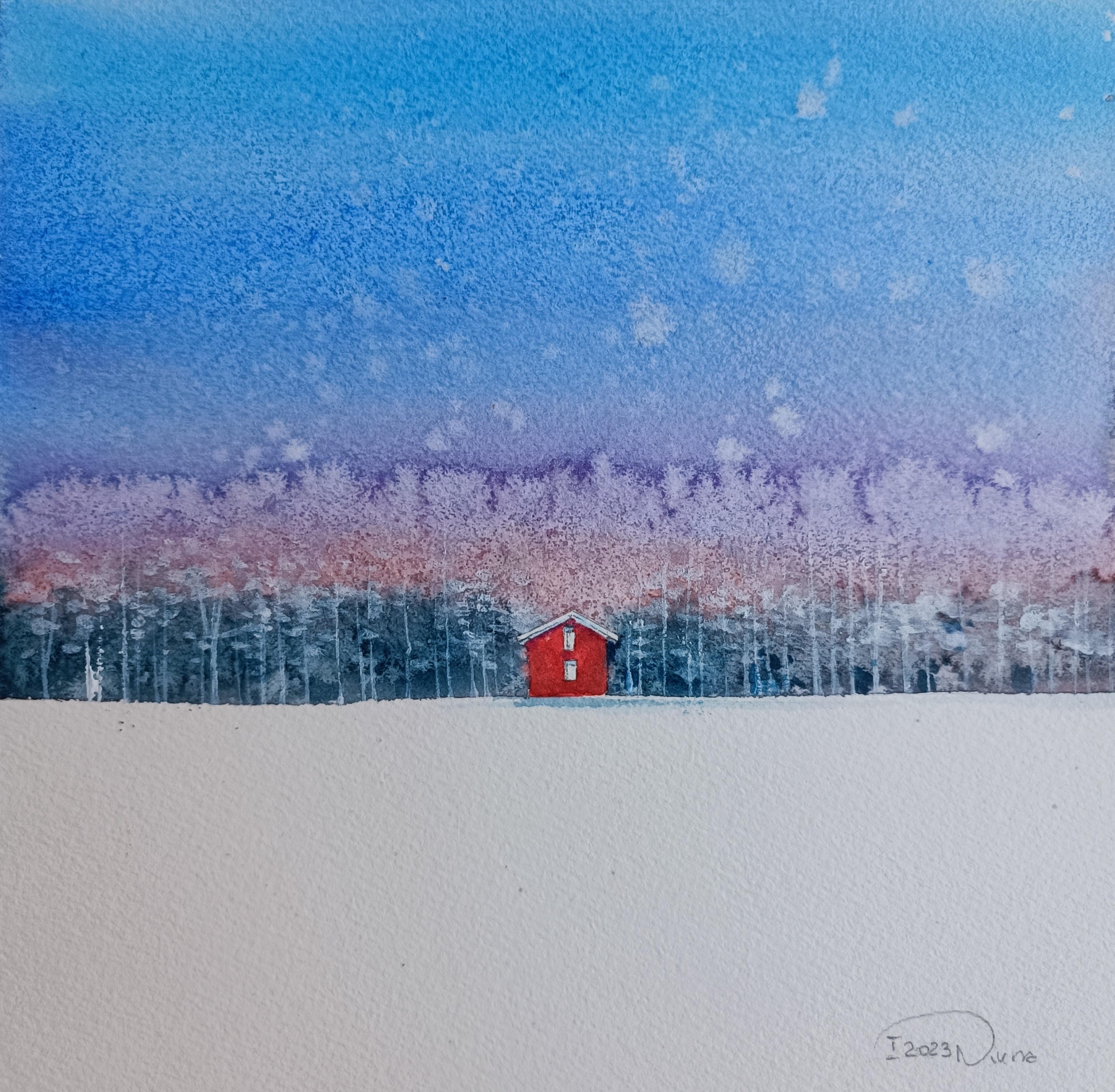 akwarela, papier, 18 x 18 cm, w oprawie: 25 x 25 cm,