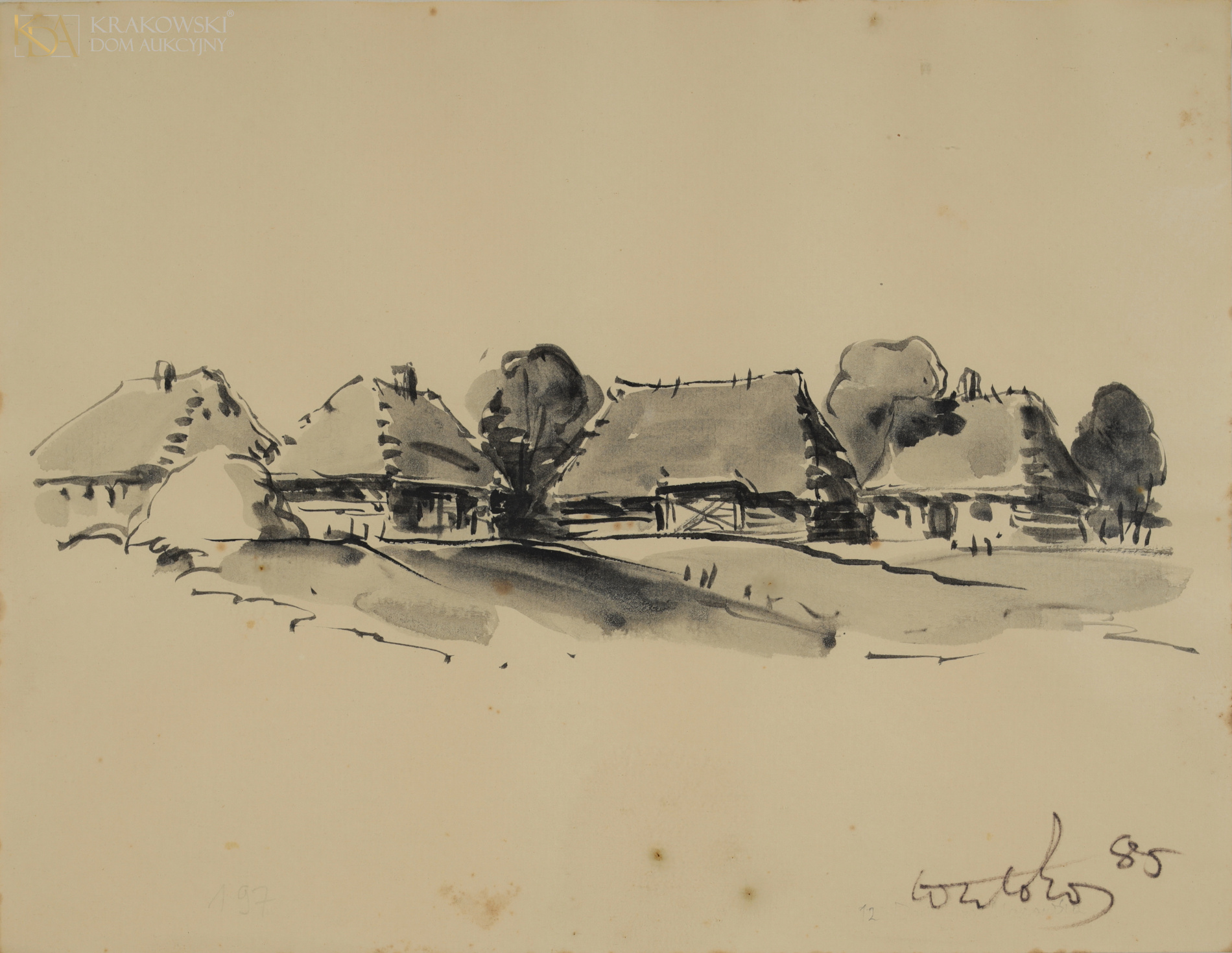 tusz, karton24 x 31 cm; 41 x 47,5 cm (z oprawą)Sygn. i dat. p.d.: "85 | Wiktor Zin"Opisany ołówkiem l.d.: "197"