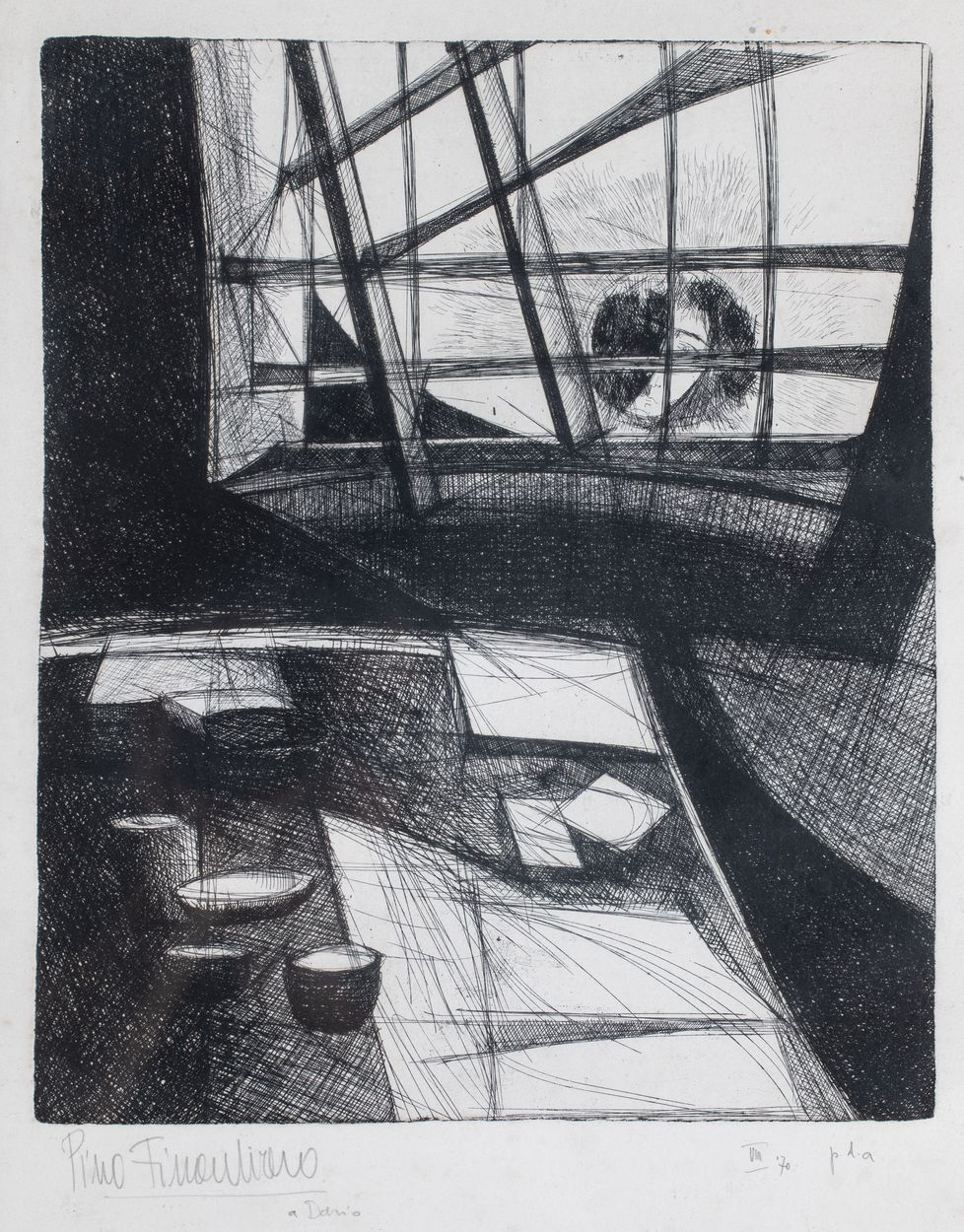 Sygnowany ołówkiem pod ryciną: Pino Finauliaro a Dario VIII 70 p.l.a
