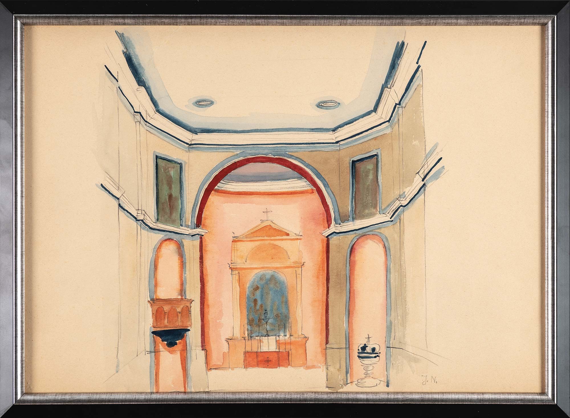 akwarela, ołówek, papier; 29,5 x 42 cm;