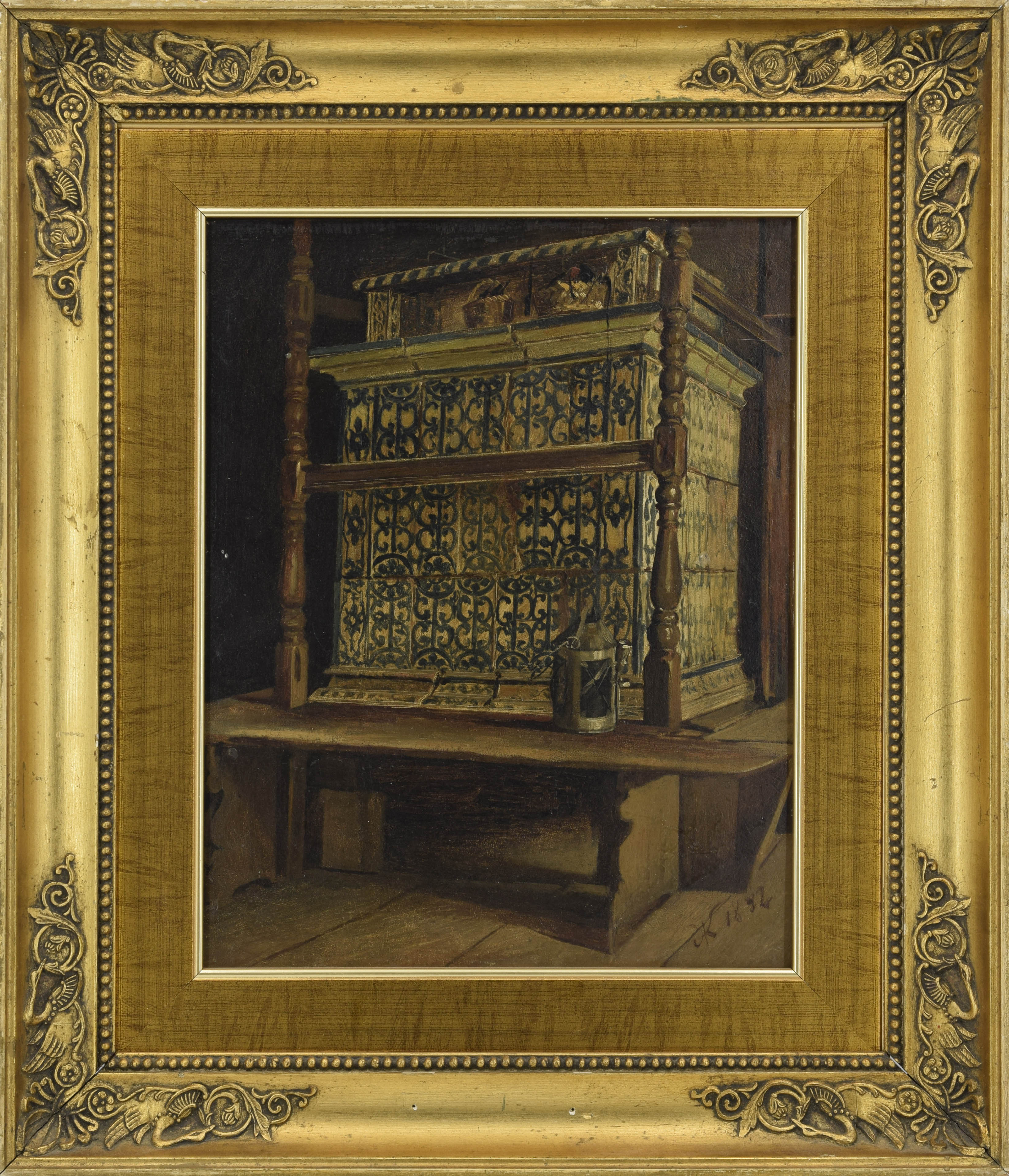 olej, tektura; 25,3 x 20,3 cm;sygn. i dat. p. d.: AK (monogramem wiązanym) 1892;na odwrocie napis (autorski): "Piec Gdański", "Z czasów monachijskich" (czarną kredką i ołówkiem).