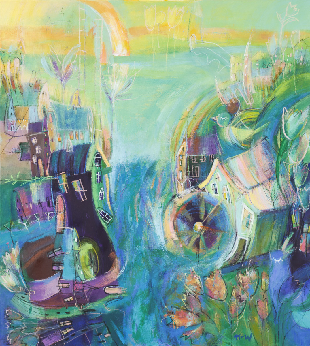 akryl, płótno, 100 x 90 cm,sygn. p.d.: nw,opisany na odwrocie: Natalia Nasada-Wojtal "Wonderful Land" 2020