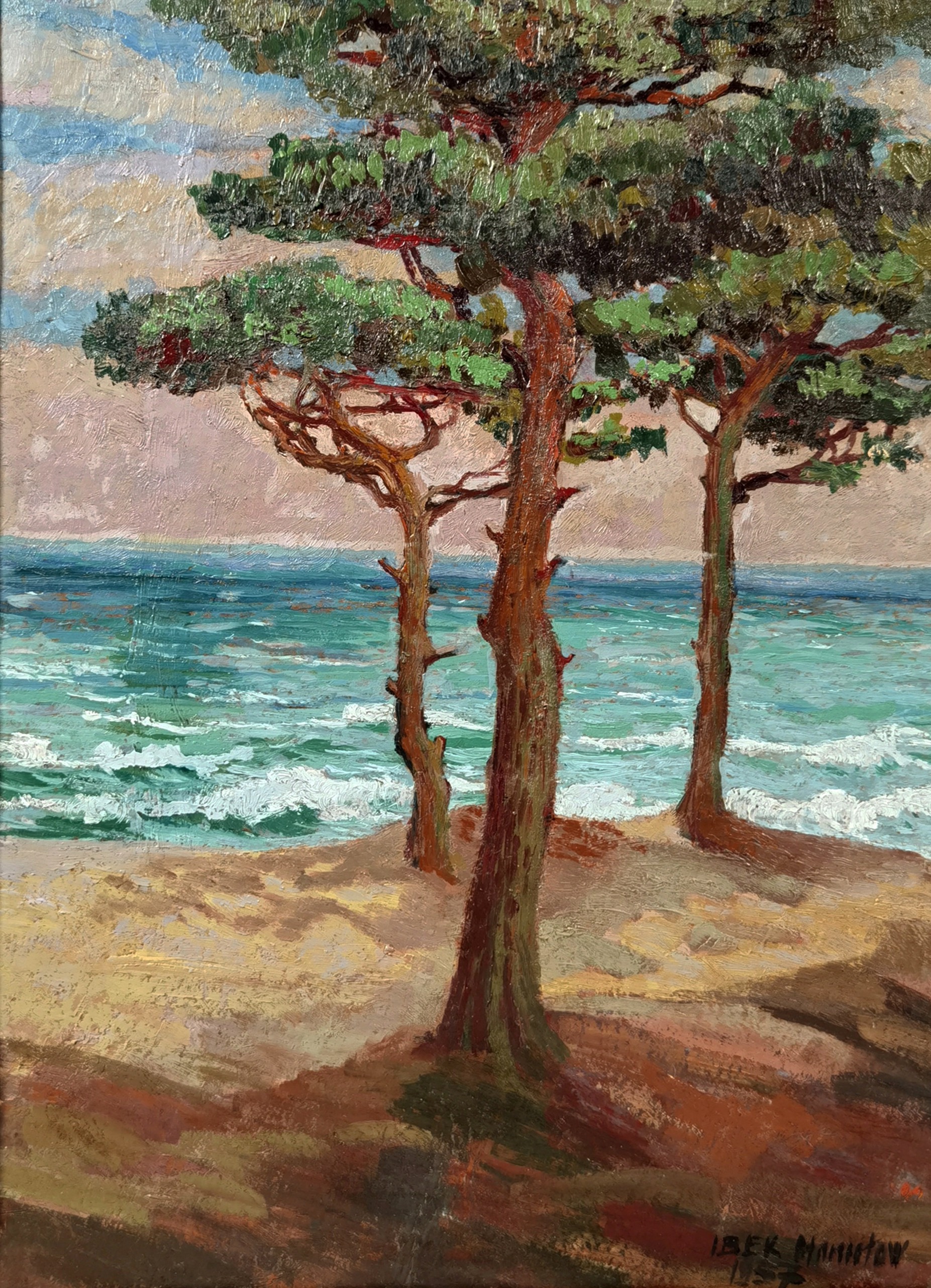 na odwrocie nalepka Związku Polskich Artystów Plastyków w Krakowie z odręcznie wypisaną informacją: Ibek Stanisław / „Wybrzeże” / olej / [podpis autora] (piórem).