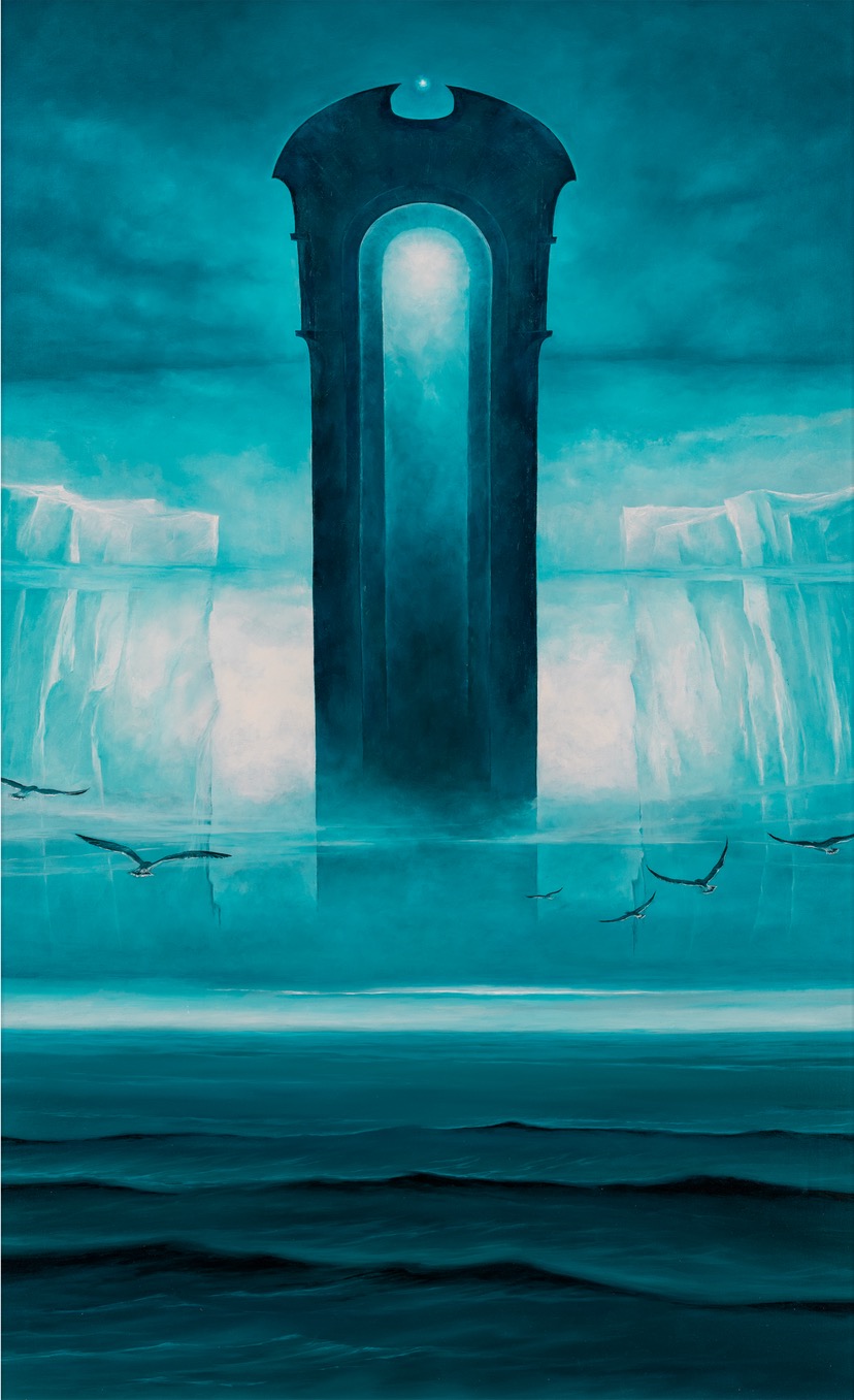 olej, płótno, 130 x 80 cm (w oprawie 153 x 103 cm),sygnowany i opisany na blejtramie: 'GRZEGORZ ROMBEL / SCUD / | XII 2021'