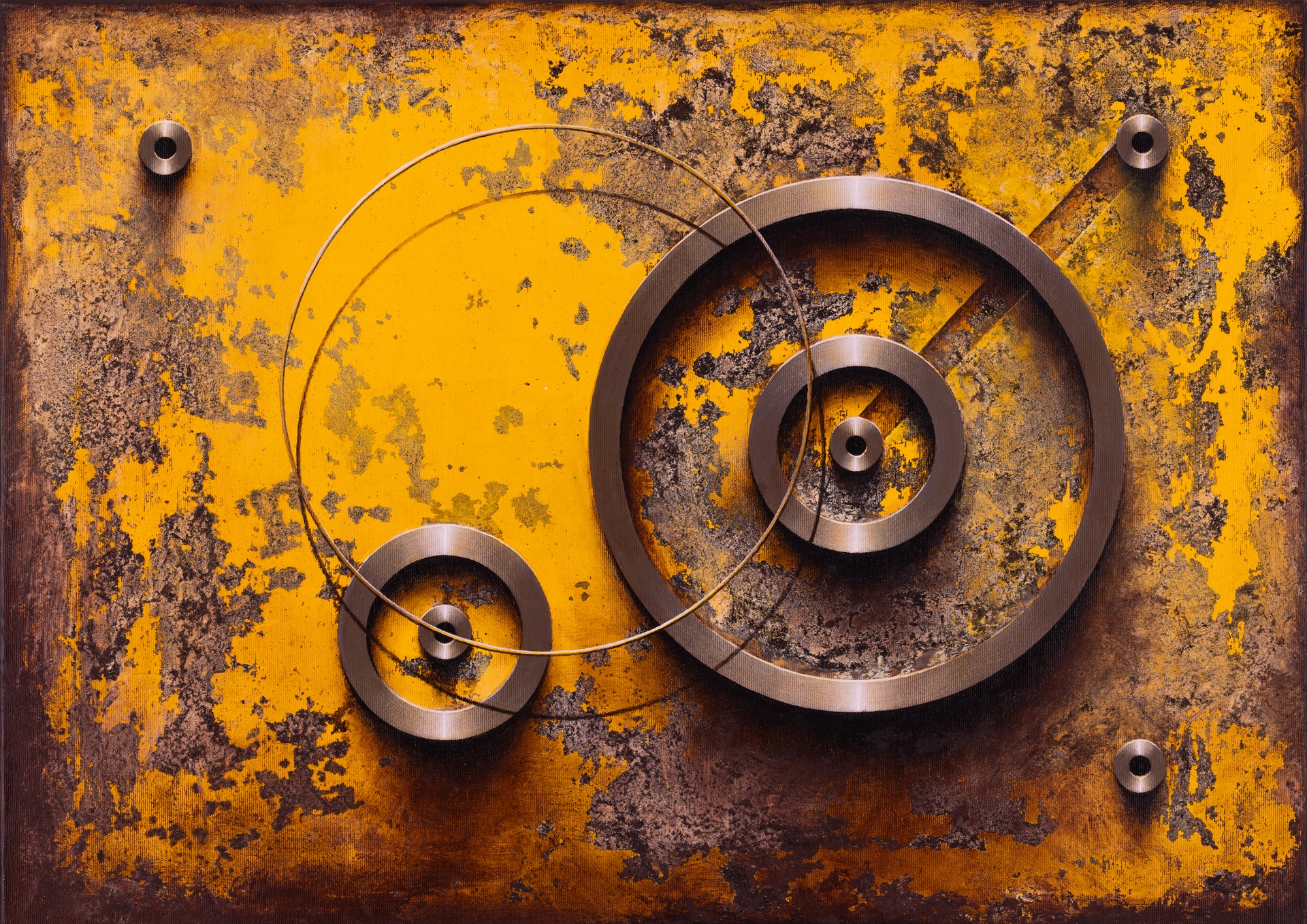 akryl, płótno, 50 x 70 cm (w oprawie 67 x 87 cm),sygnowany na odwrocie: 'DANIEL KRYSTA | tyt: "YEL 542" | tech: Akryl na płótnie | 70 x 50 cm | 2023 | Daniel Krysta'