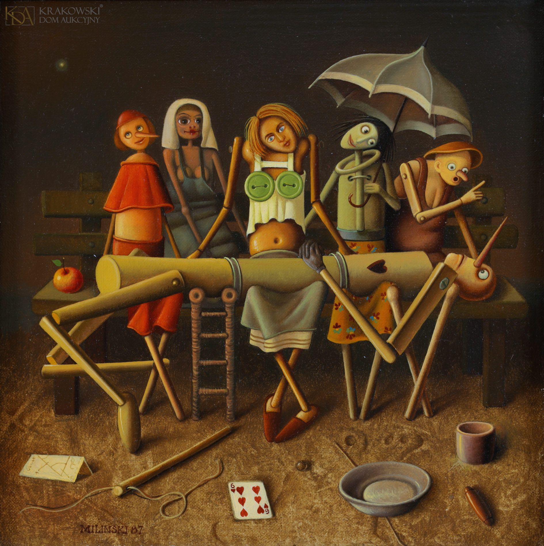 olej, płótno27 x 27 cm; 37,7 x 37,7 cm (z oprawą)Sygn. i dat. l.d.: "MILINSKI 87"Opisany na blejtramie: "Z CYKLU PIETA | D. MILINSKI J. GÓRA | 1987. POLEN"