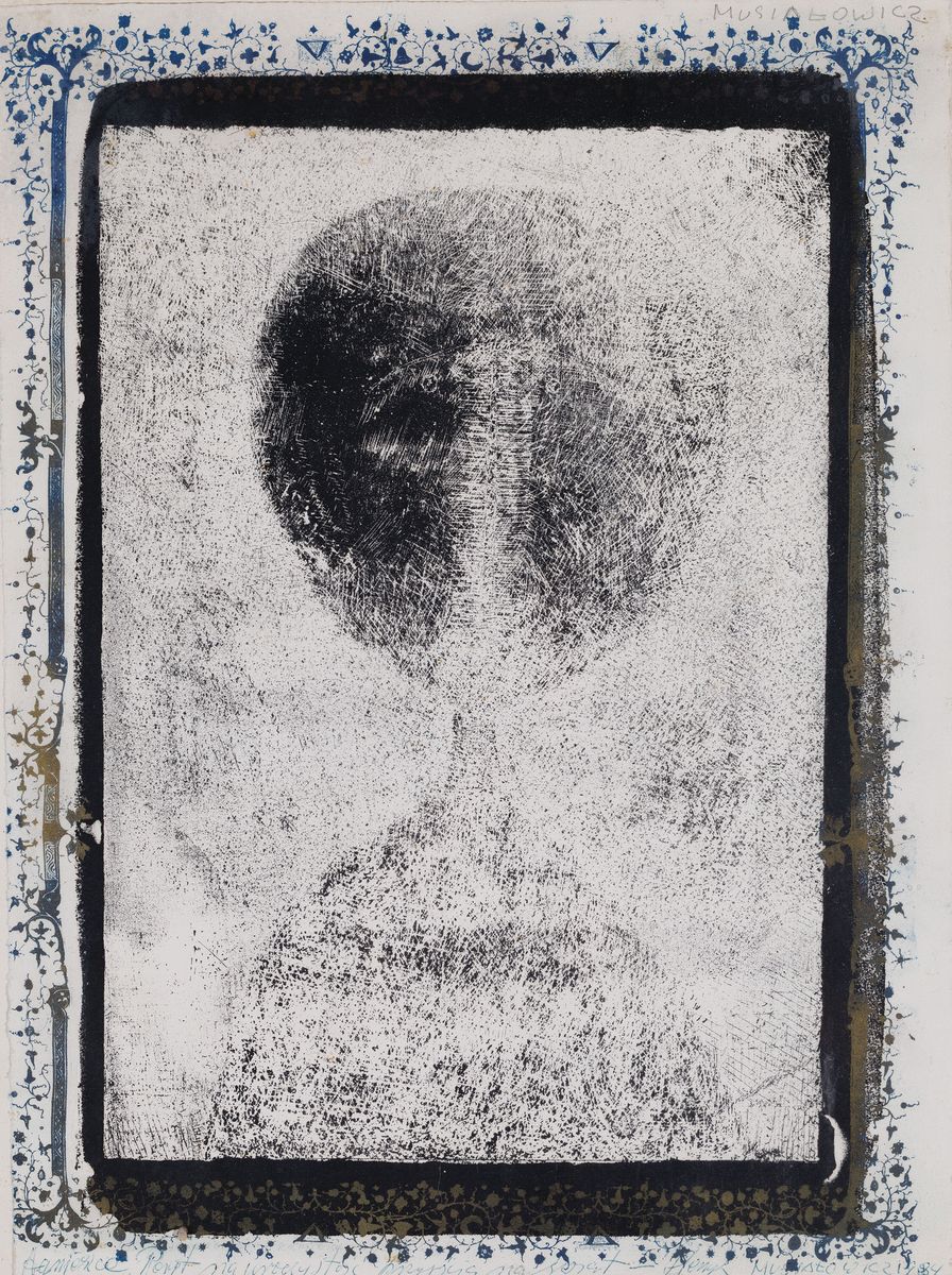 Technika własna, papier; 53 x 39, 5 cmSygnowany p.g.: Musiałowicz; d. dedykacja autorska: Agnieszce Peryt na uroczystość przyjścia na świat – Henryk Musiałowicz 1984Oprawiony