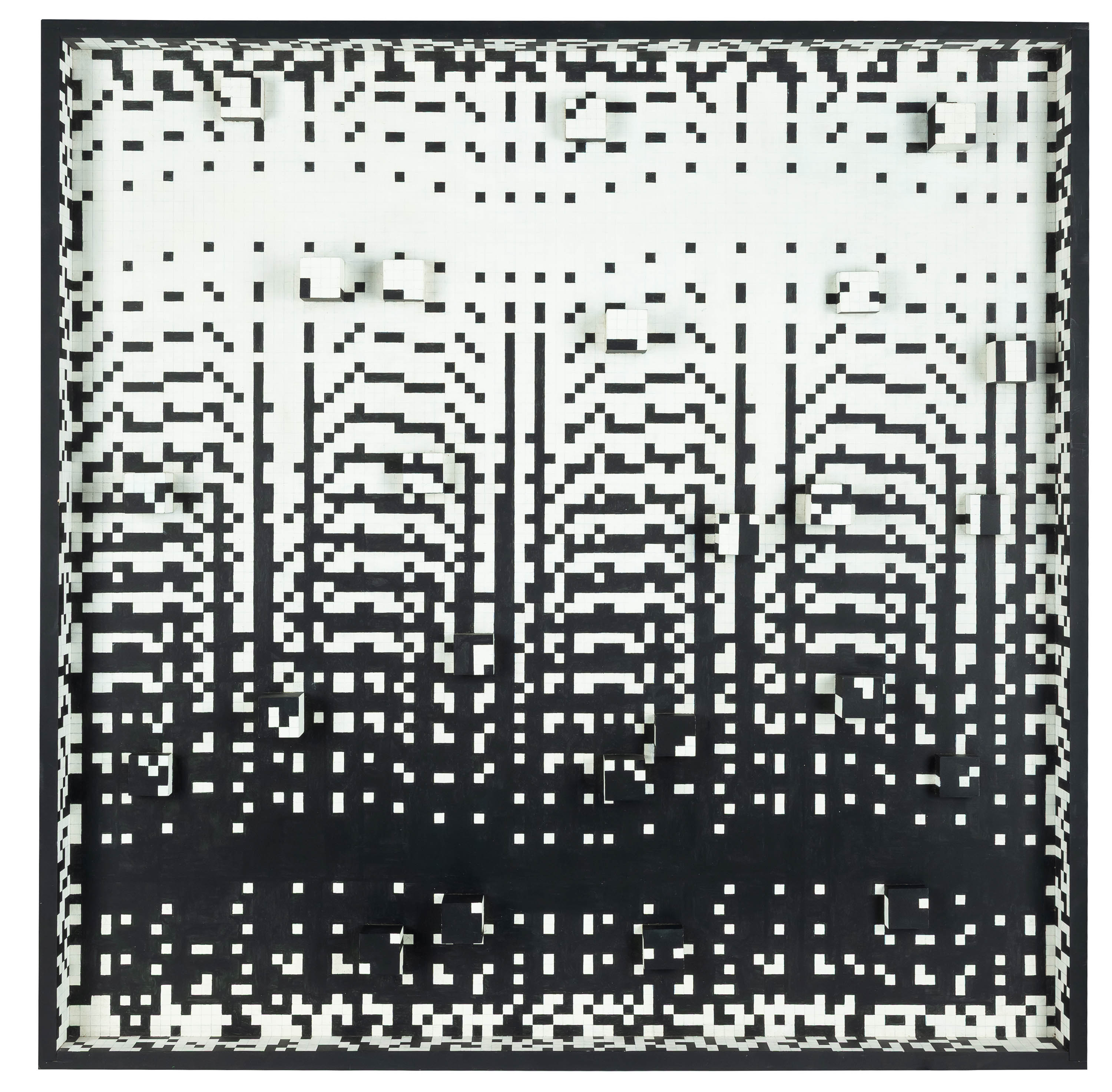 drewno, akryl, ołówek, pilśnia, 102 x 102 x 5cm, sygn.: na odwrocie napis ołówkiem Winiarski 24/17, metka z numerem CU//158/2025 Do obiektu dołączony certyfikat potwierdzający autentyczność od córki artysty z 2024 roku.