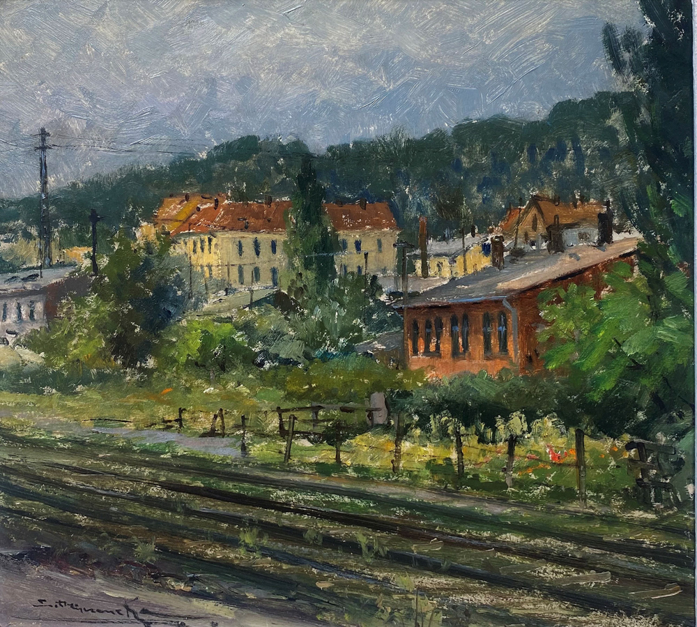 olej, tektura, 31,5 × 37 cm w świetle oprawy