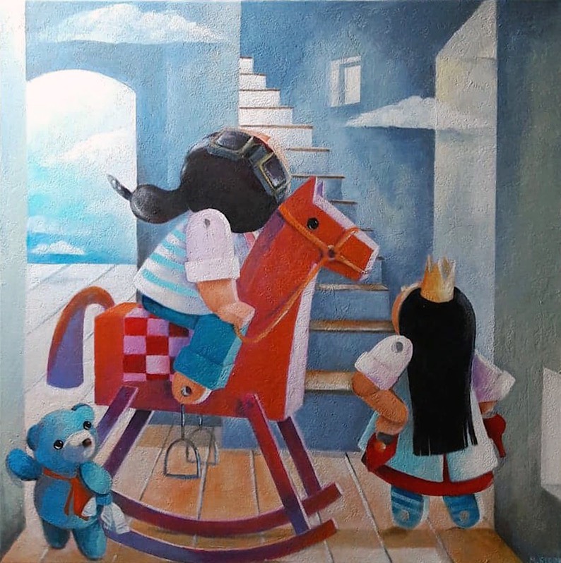 akryl na płótnie, technika własna, 100 x 100 cm