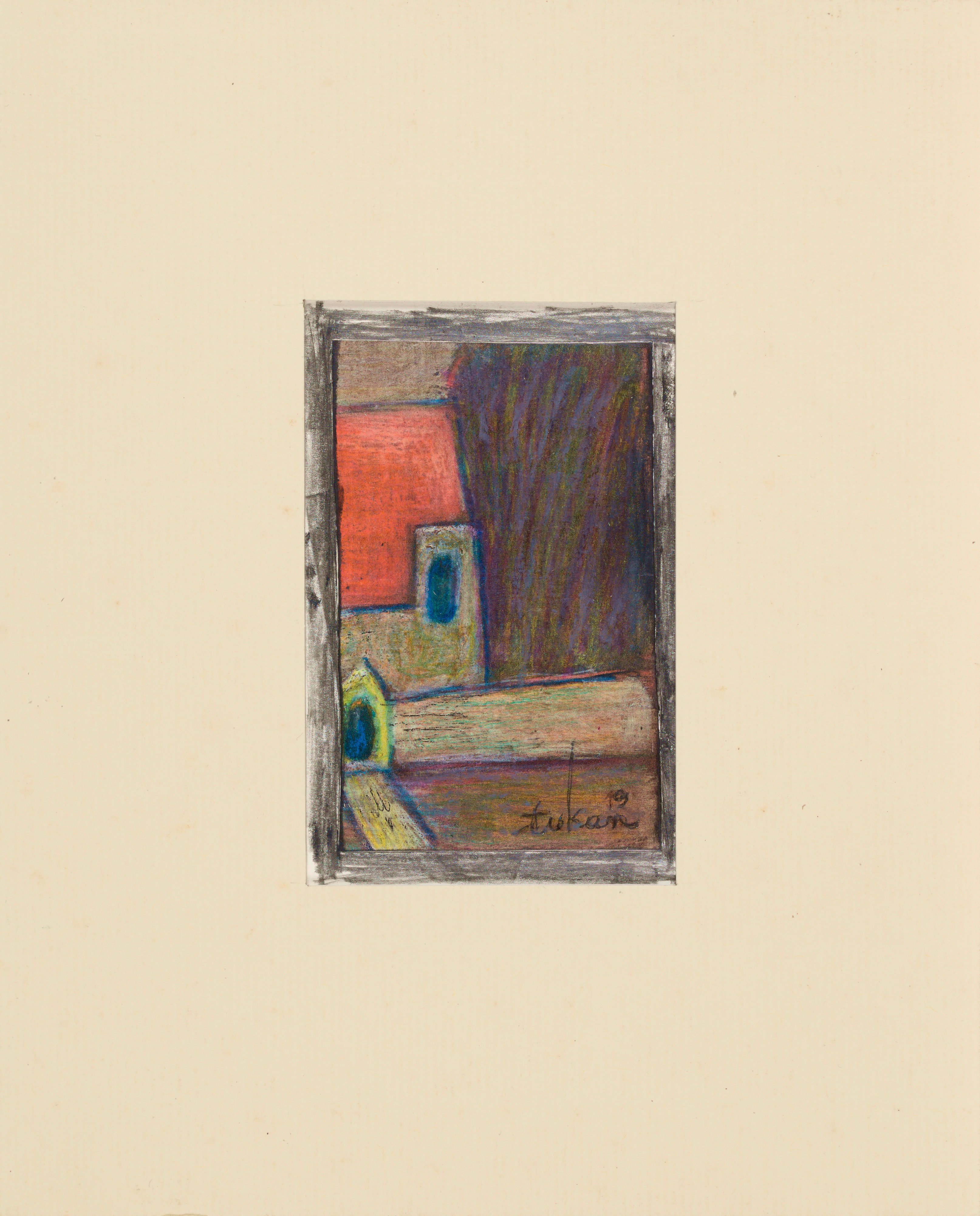 technika mieszana, papier; 9,8 x 6,2 cm (w św. passe-partout);
