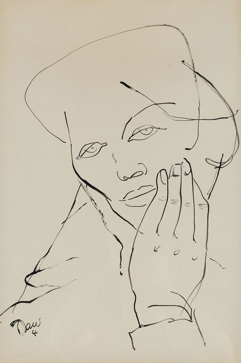 Tusz, papier; 47,5 x 31 cm (w świetle p-p)Sygnowany l.d.: Daw / 4