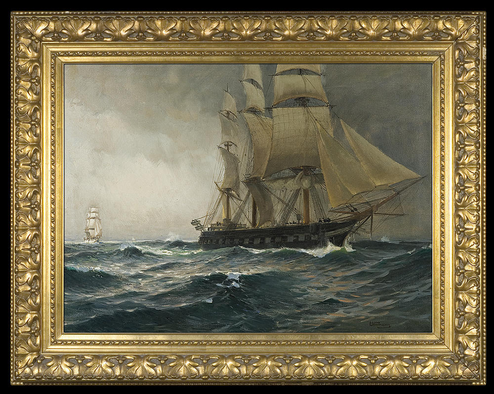 sygnowany p.d.: ENeumann (inicjały wiązane) Na odwrocie, na krośnie częściowo czytelny napis atramentem: Prof. Neu/.../ C/.../ oraz numer: 1379. Na ramie nalepka z napisem atramentem: Gneisenau | gekauft 1902 [?]