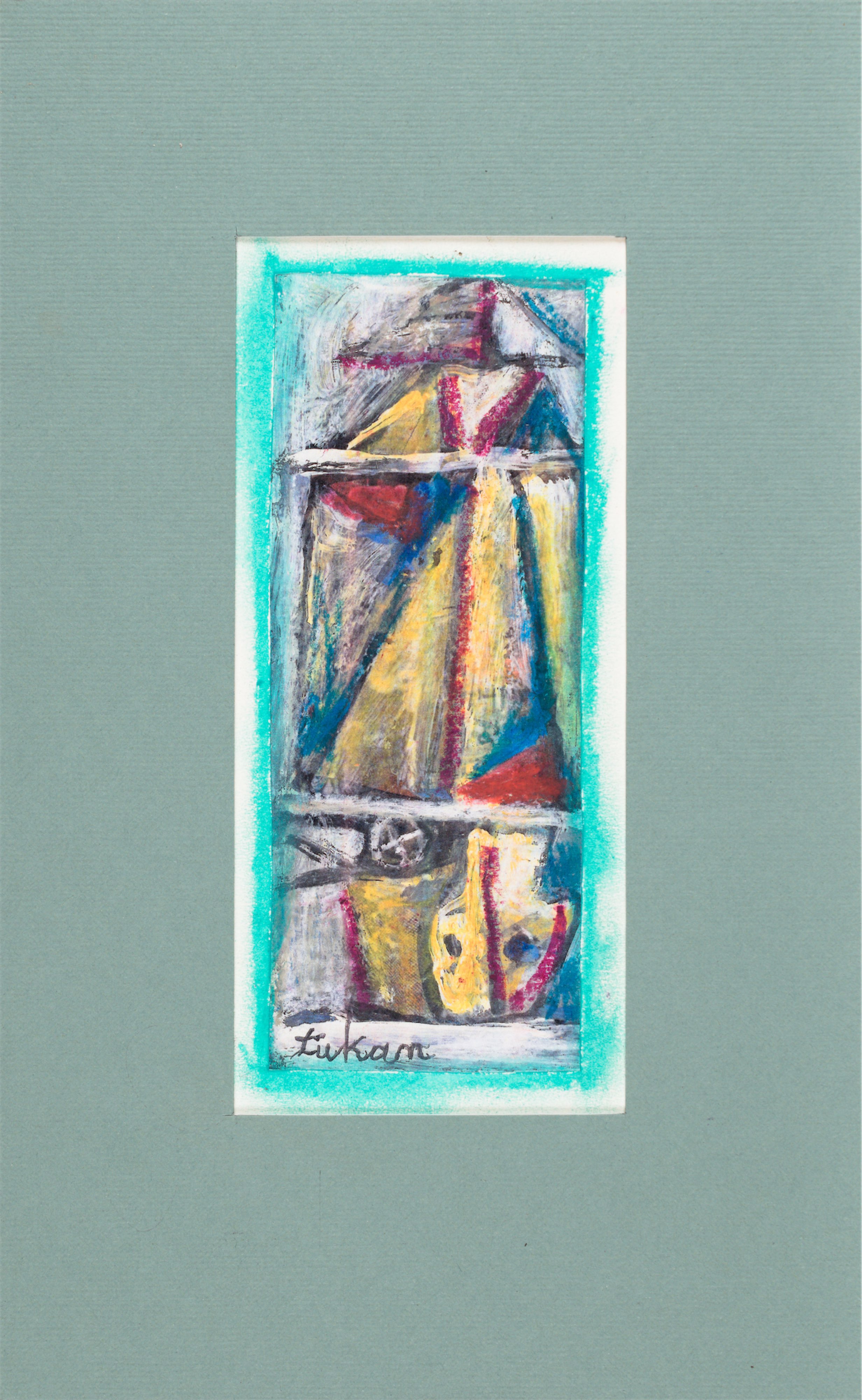 technika mieszana, papier; 16,4 x 7,2 cm (w św. passe-partout);