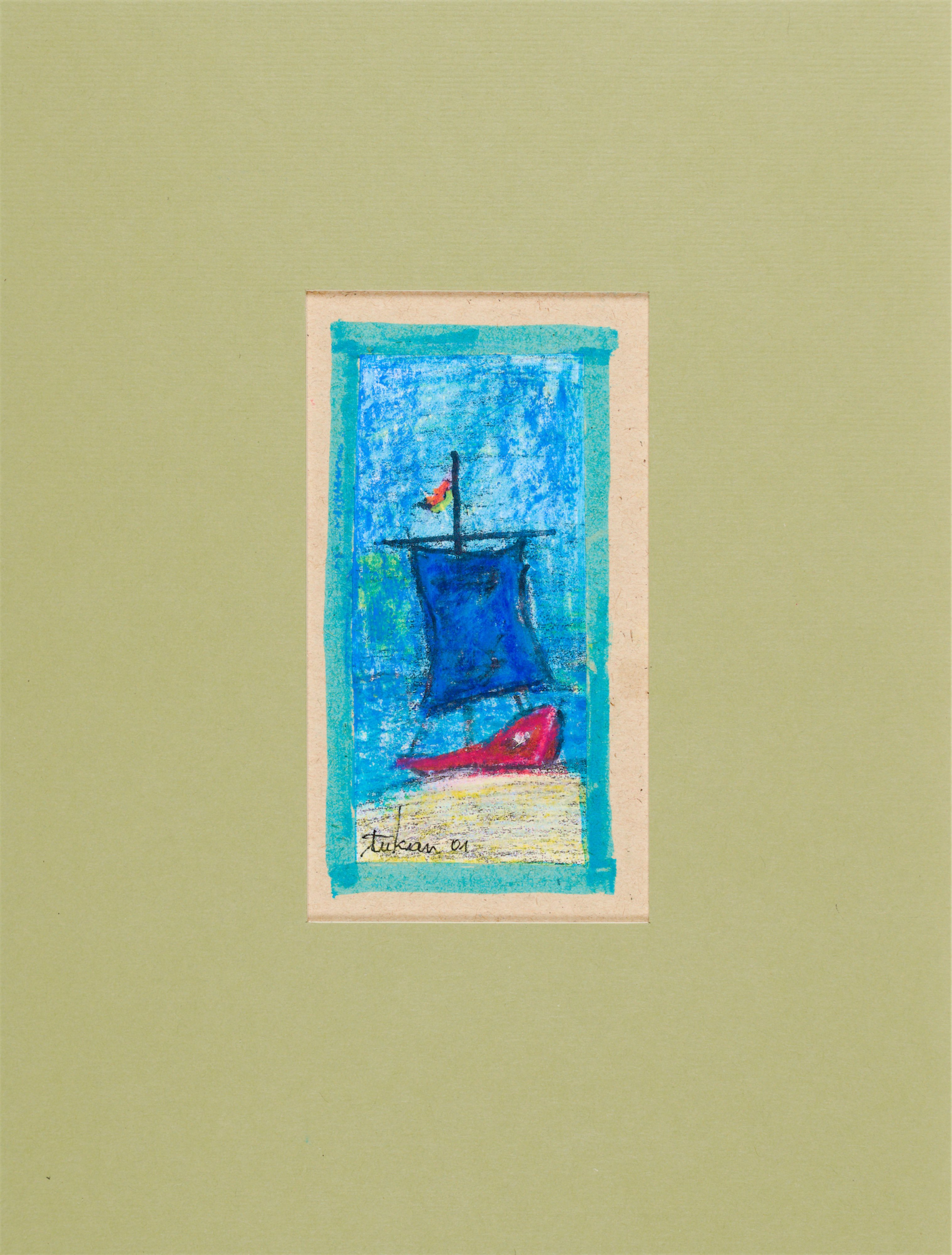 technika mieszana: tusz, akryl, gwasz, kredka, papier; 11,9 x 6,5 cm (w św. passe-partout);sygn. l. d.: tukan 01.